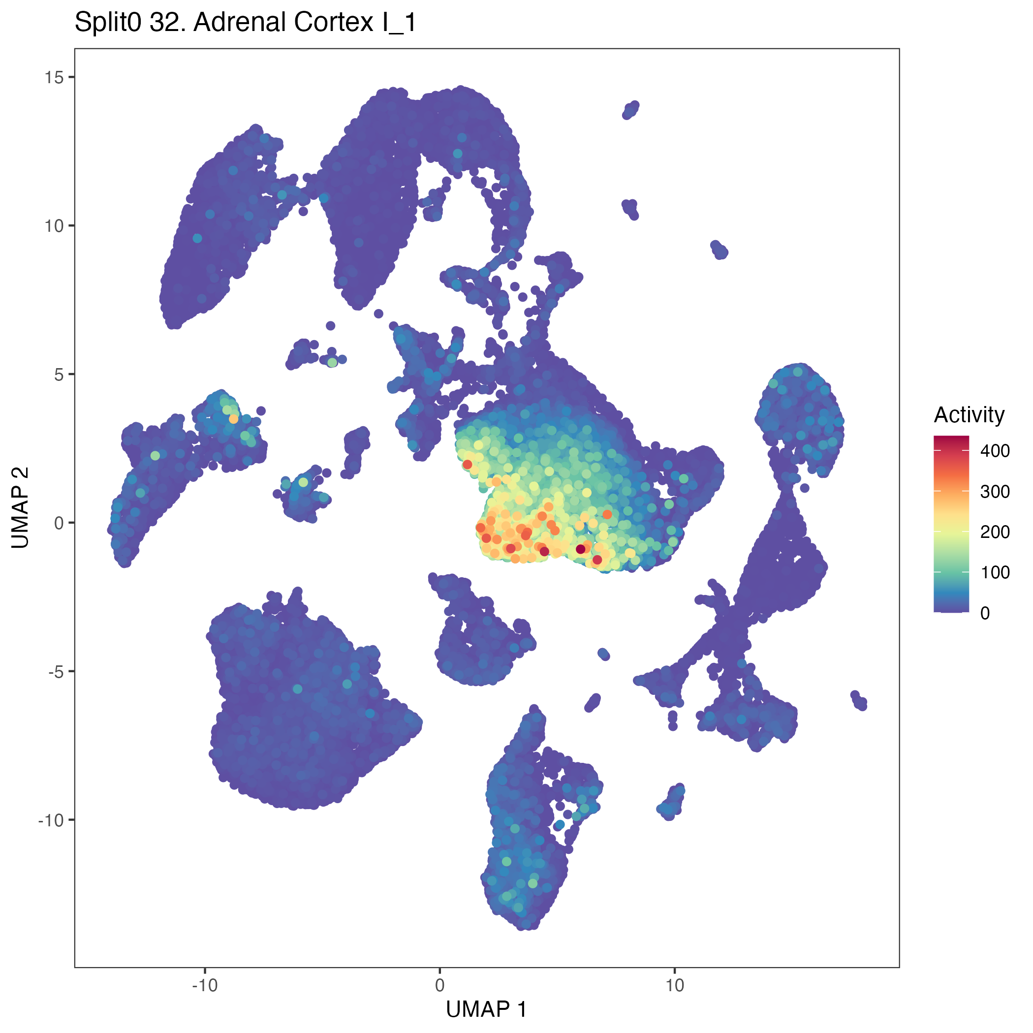 Adrenal Cortex (Yuan) Obtained from Fig. 6 of Yuan et al. https://www.biorxiv.org/content/10.1101/2020.05.15.097469v1: Wilcoxon ranksum test P-value for gene set overrepresentation: 7.71e-02 Mean rank of genes in gene set: 5397.5 Rank on gene expression program of genes in gene set: