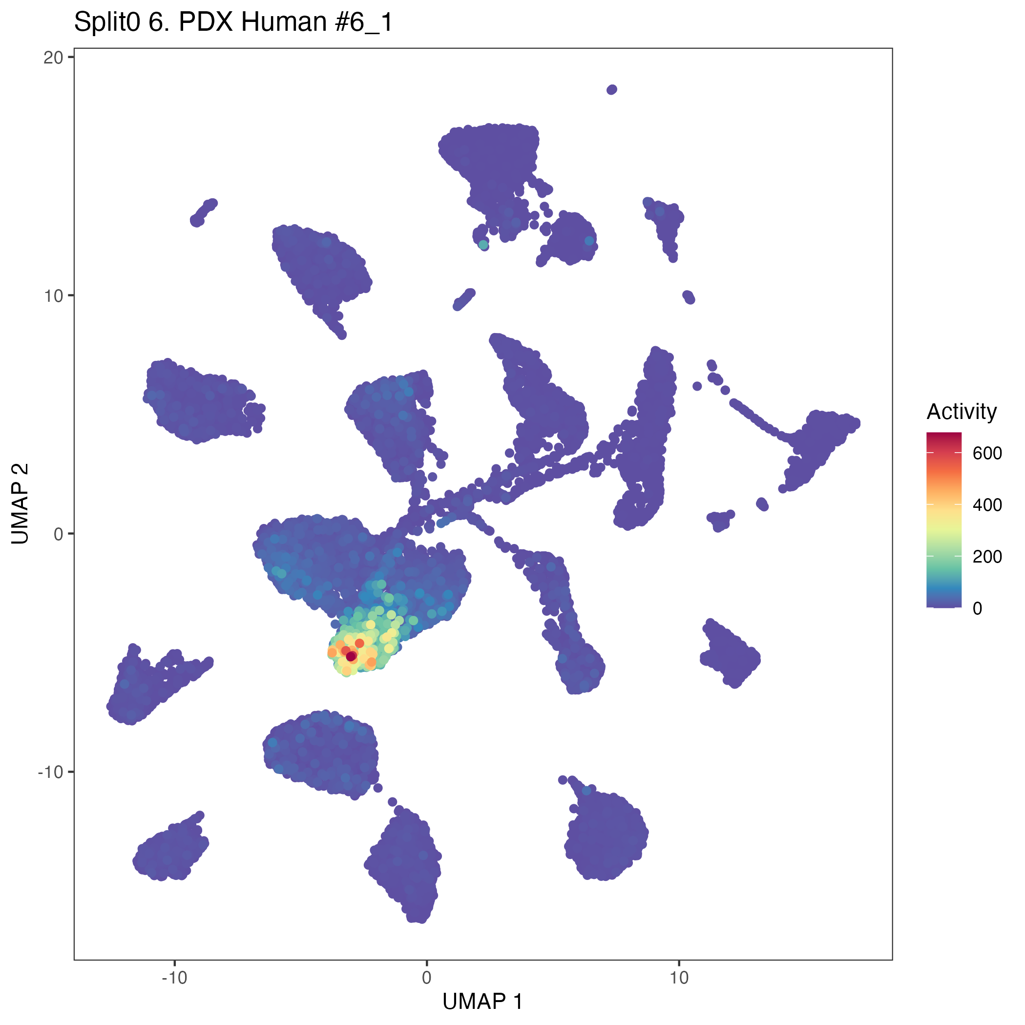 SCPs neuroblastoma unique (Olsen) Similar to above, but for genes unique to neuroblastoma SCP-like cells. Note FN1 is often used as a mesenchymal marker gene.: Wilcoxon ranksum test P-value for gene set overrepresentation: 8.63e-01 Mean rank of genes in gene set: 7895.5 Rank on gene expression program of genes in gene set: