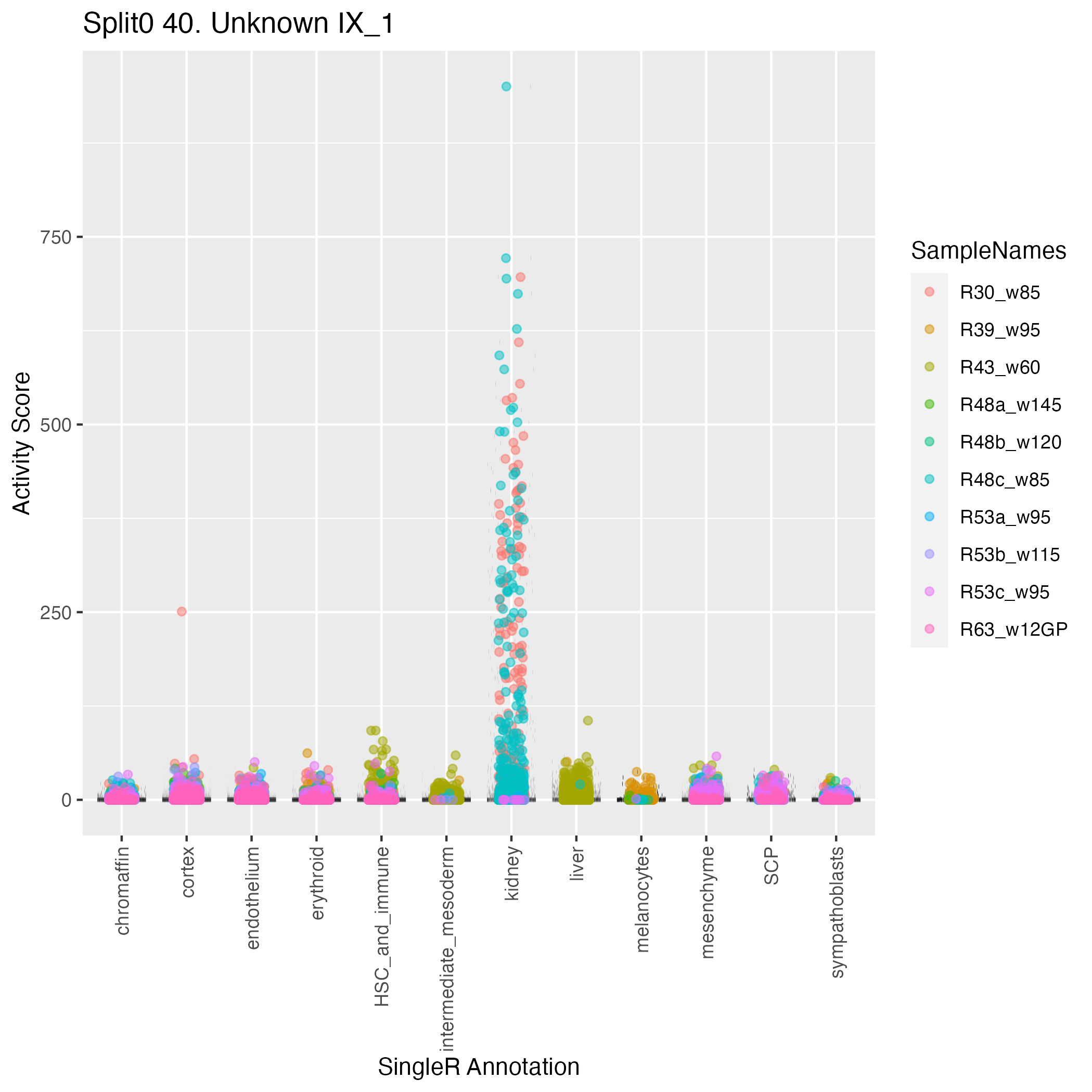 Mesenchymal cells (Jansky) Mentioned in the main text (Jansky et al, Nature Genetics (2021)), page 1, that COL1A1+ Mesenchymal were identified in their fetal adrenal glands, this is also highlighted in the UMAP plot on their Fig 1B. Additional genes also shown in their Extended data Figure 2D.: Wilcoxon ranksum test P-value for gene set overrepresentation: 9.93e-01 Mean rank of genes in gene set: 23527.67 Rank on gene expression program of genes in gene set: