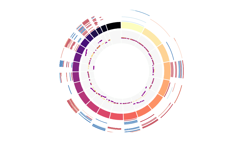 Outer tracks are putative CNV regions (gains = red, losses = blue) for each patient