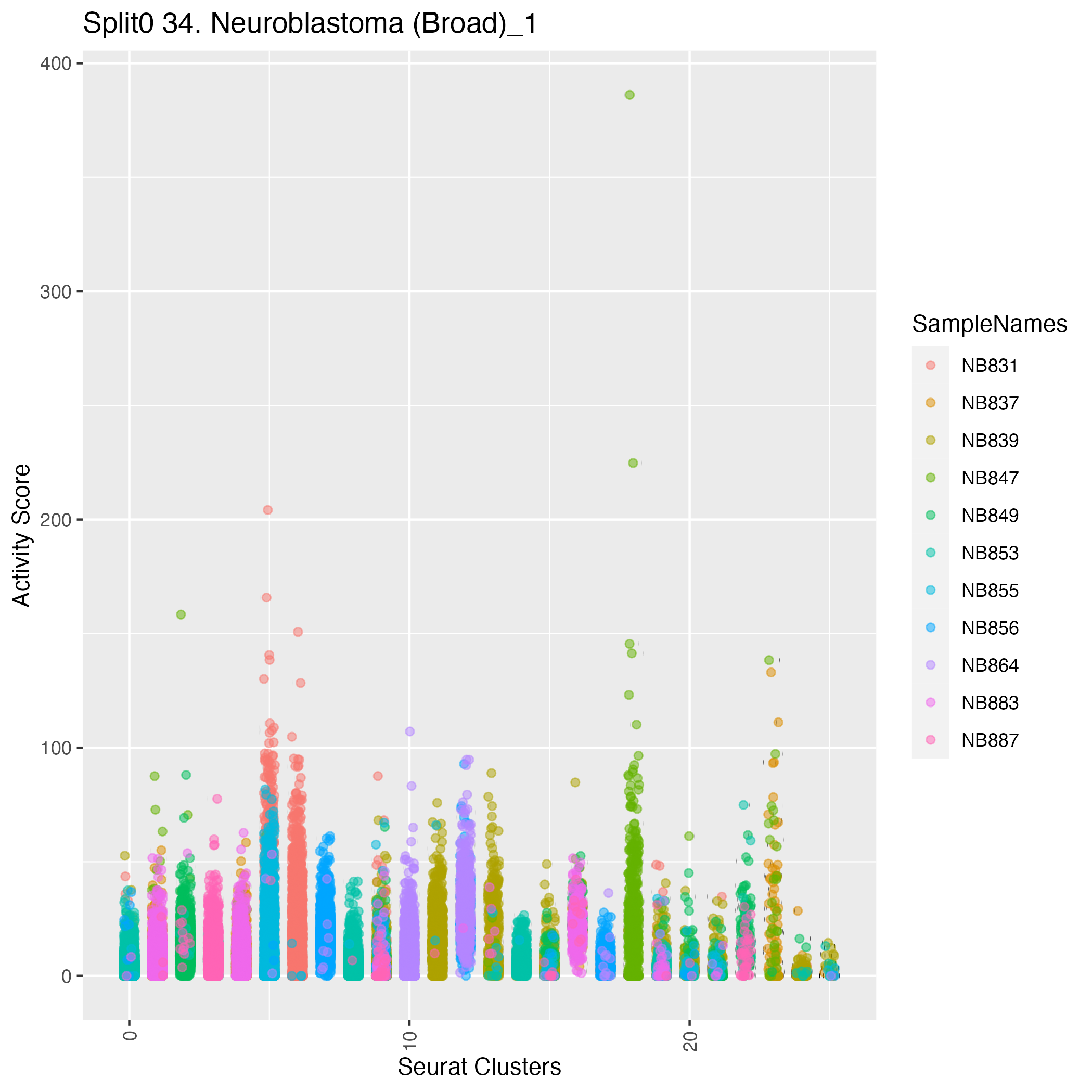 Sympathoblasts (Kildisiute) Sympathoblasts markers obtained from Kildisiute et al, Supplmenentary Table 2, references supporting these genes are provided in Supp Table S2 of Kildisiute et al (PMID 33547074) https://www.science.org/doi/suppl/10.1126/sciadv.abd3311/suppl_file/abd3311_tables_s1_to_s12.xlsx: Wilcoxon ranksum test P-value for gene set overrepresentation: 8.44e-01 Mean rank of genes in gene set: 14005 Rank on gene expression program of genes in gene set: