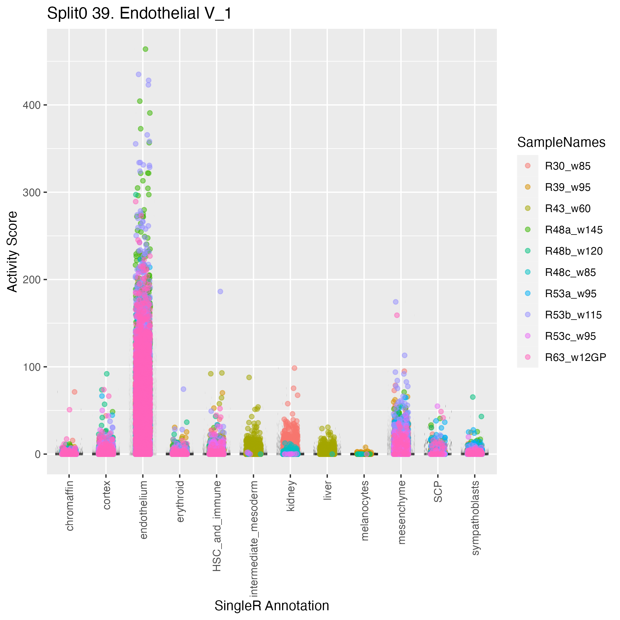 Endothelial subclusters 2-6 (Hanemaaijer) Marker genes obtained from Supplementary Table SD of Hanemaaijer et al (PMID 33500353). The authors generated single-cell RNA-seq data (sort-seq, 2,229 cells total) from mouse adrenal glads at E13.5, E14.5, E17.5, E18.5, P1 and P5. These were marker genes that matched with a similar dataset generated by Furlan et al (PMID 28684471). This particular set of markers are for Various endothelial subclusters of Endothelium clusters: Wilcoxon ranksum test P-value for gene set overrepresentation: 7.64e-01 Mean rank of genes in gene set: 14102.8 Rank on gene expression program of genes in gene set: