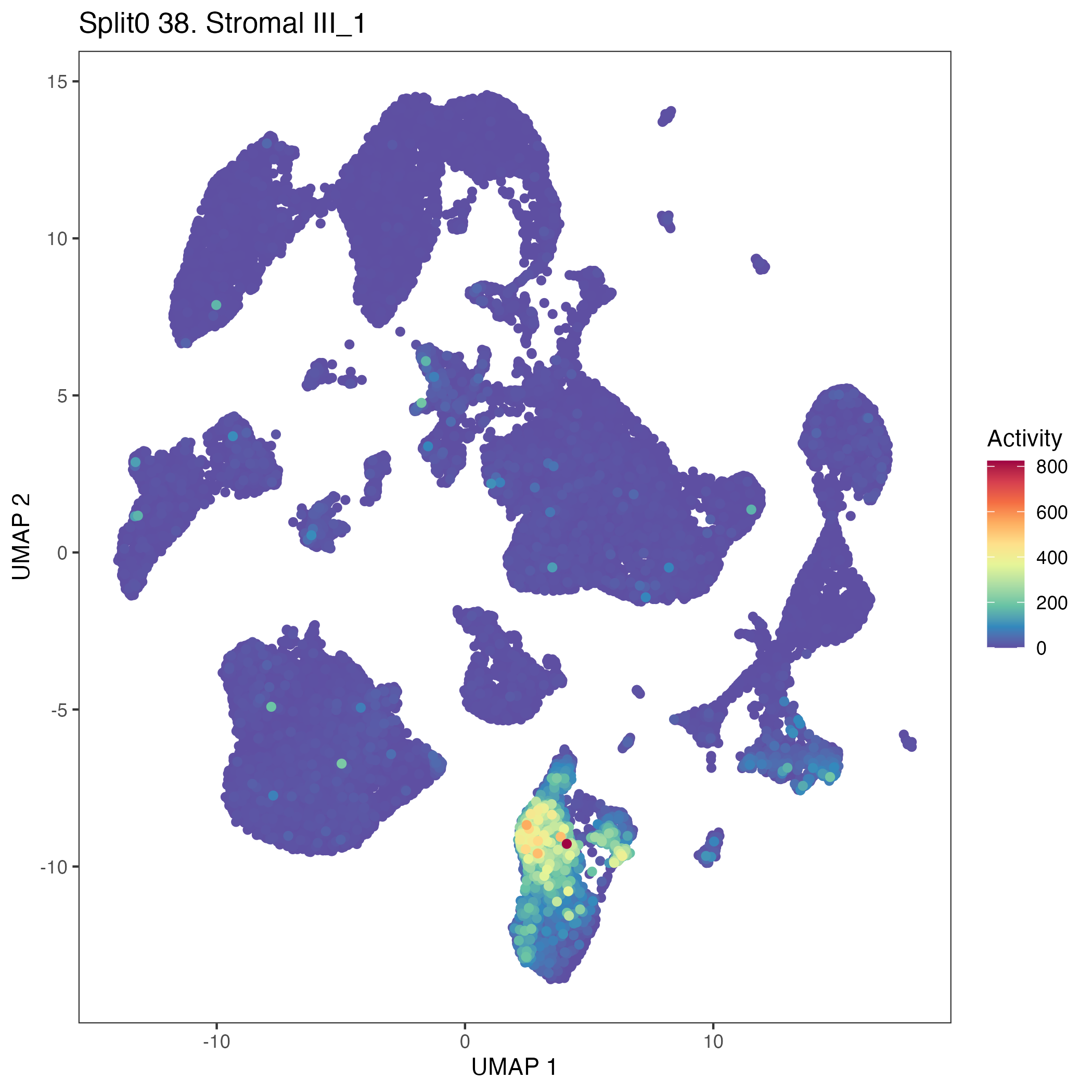Mesenchymal cells (Jansky) Mentioned in the main text (Jansky et al, Nature Genetics (2021)), page 1, that COL1A1+ Mesenchymal were identified in their fetal adrenal glands, this is also highlighted in the UMAP plot on their Fig 1B. Additional genes also shown in their Extended data Figure 2D.: Wilcoxon ranksum test P-value for gene set overrepresentation: 1.40e-03 Mean rank of genes in gene set: 47 Rank on gene expression program of genes in gene set: