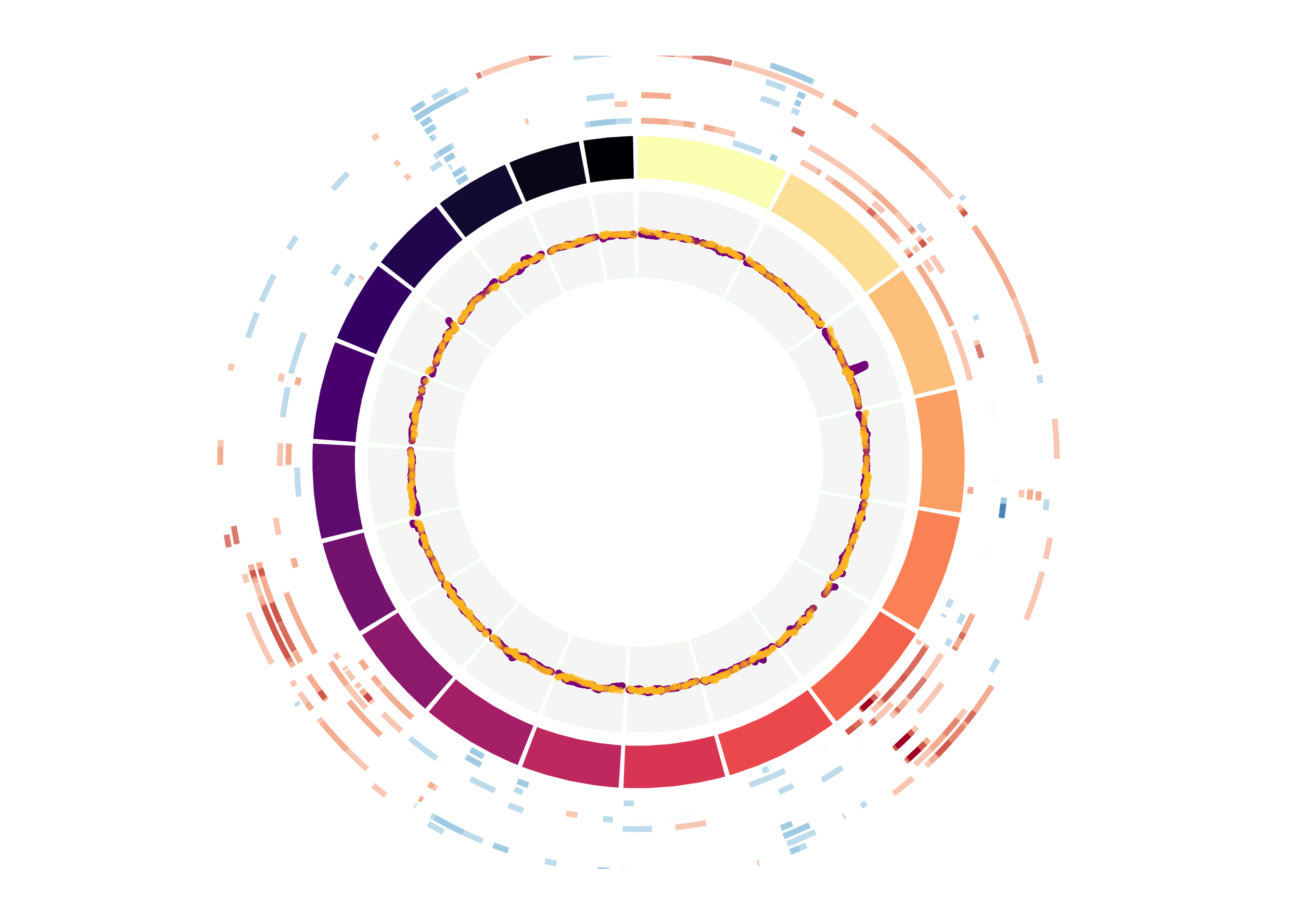 Outer tracks are putative CNV regions (gains = red, losses = blue) for each patient