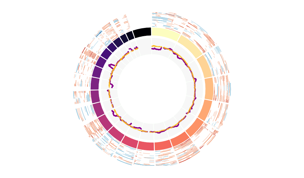 Outer tracks are putative CNV regions (gains = red, losses = blue) for each patient