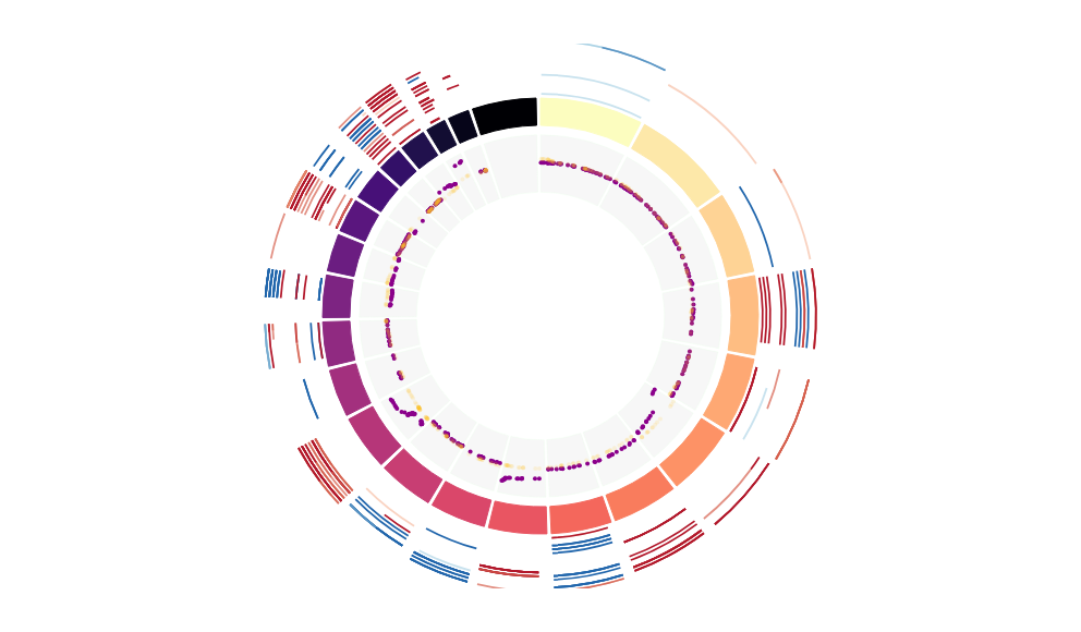 Outer tracks are putative CNV regions (gains = red, losses = blue) for each patient