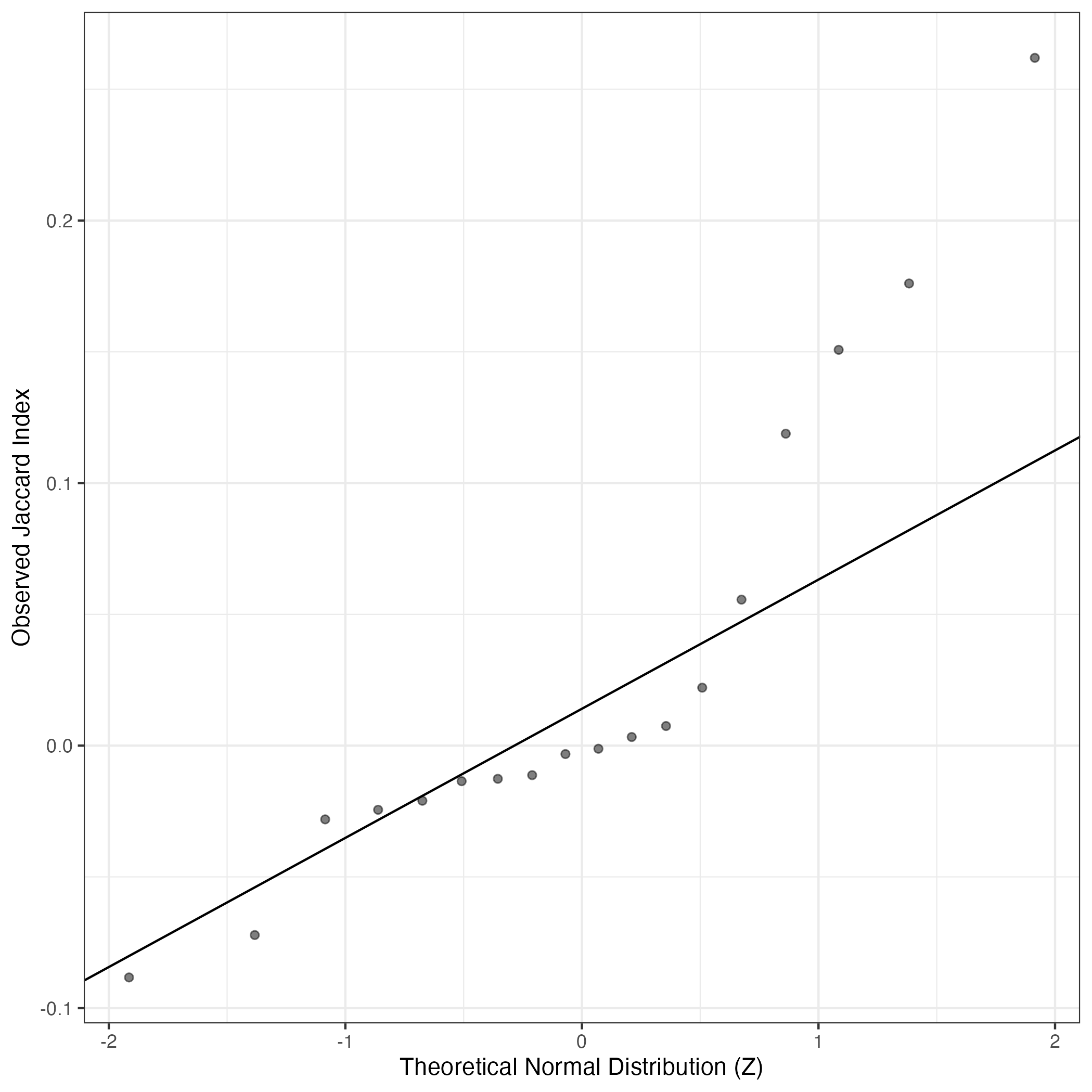 Wilcoxon ranksum test P-value for gene set overrepresentation: 6.47e-01