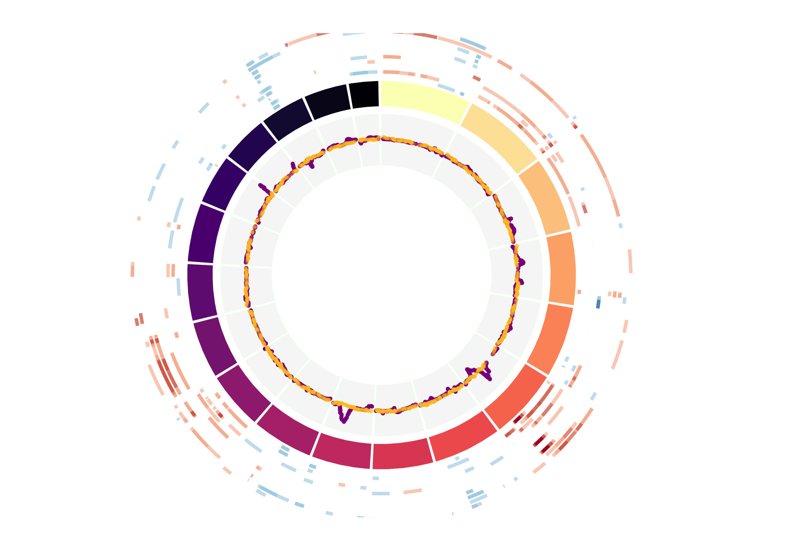 Outer tracks are putative CNV regions (gains = red, losses = blue) for each patient