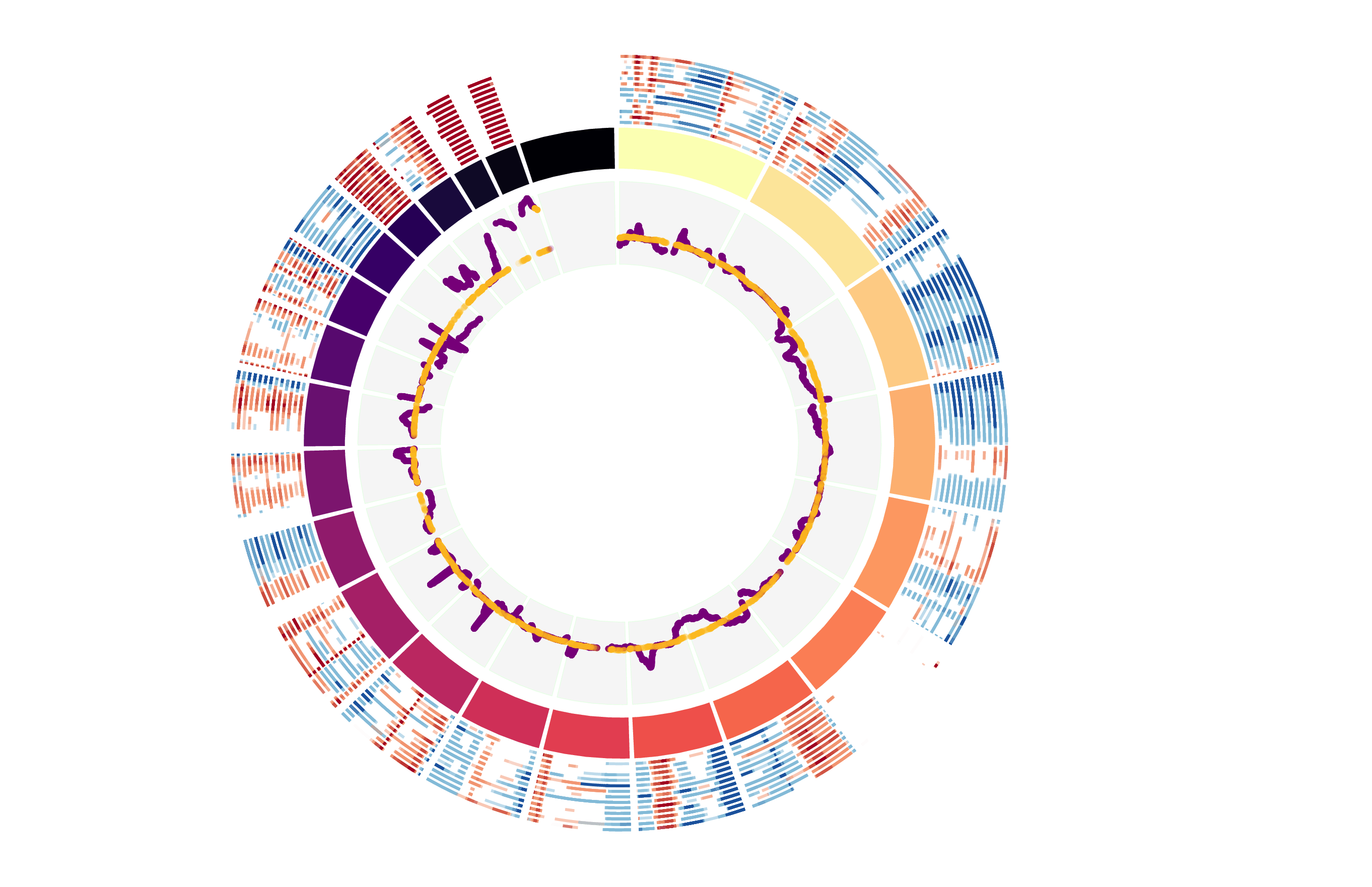 Outer tracks are putative CNV regions (gains = red, losses = blue) for each patient