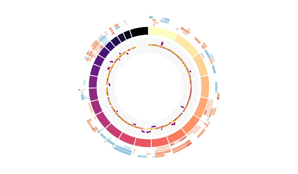 Outer tracks are putative CNV regions (gains = red, losses = blue) for each patient