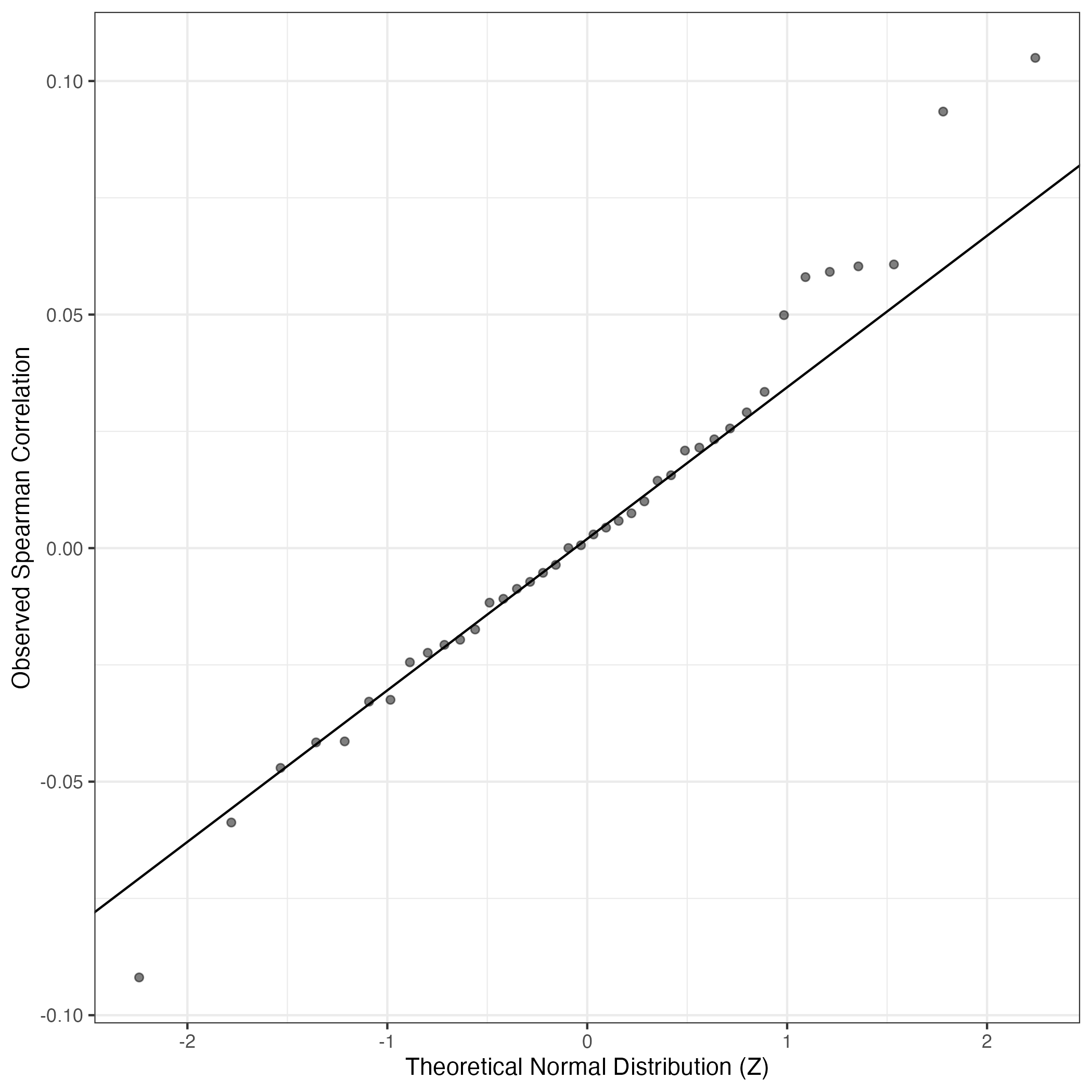 QQ Plot showing correlations with other GEPs in this dataset, calculated by Spearman correlation: