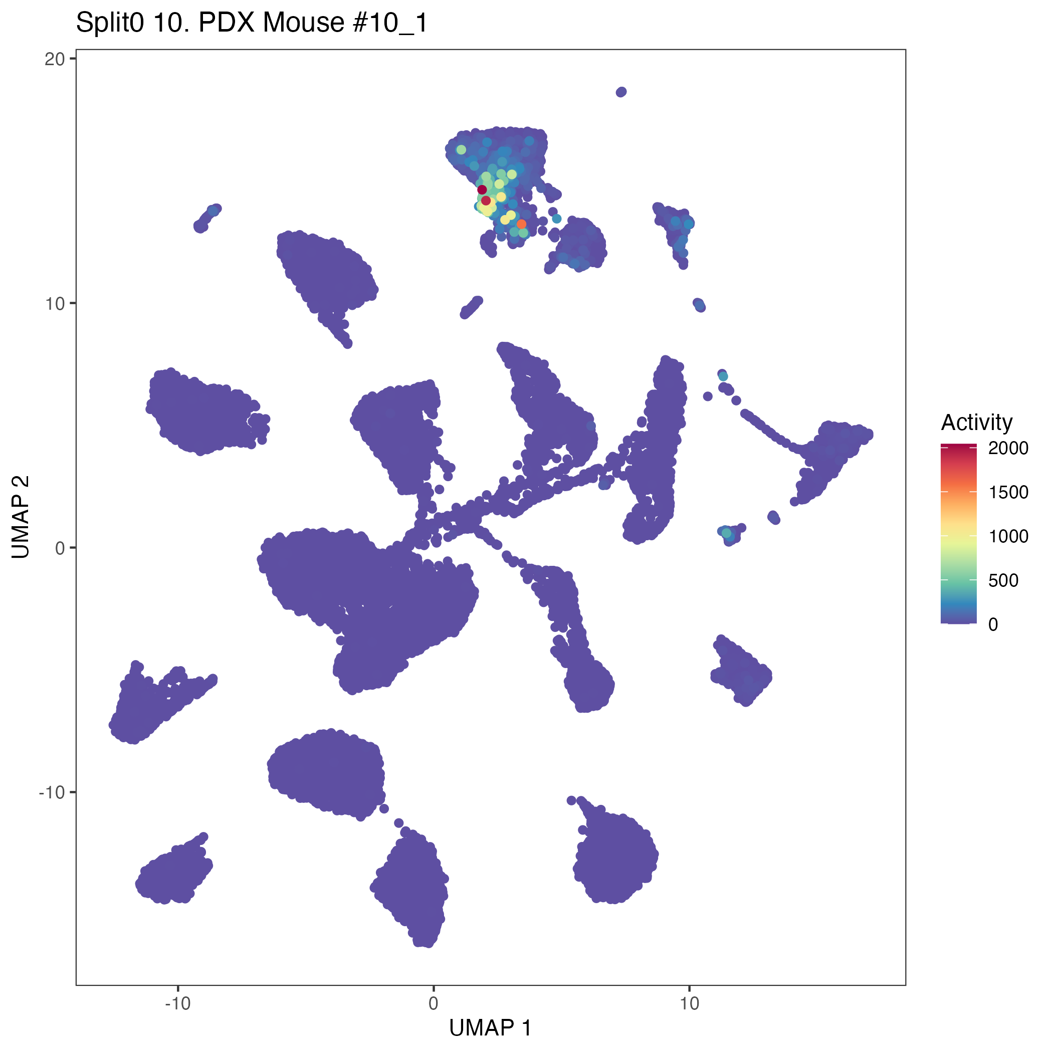 Epithelial cells: Epithelial cells (model markers) highly specialised cells which are located in the outer layer of stroma and form the cellular components of the epithelium: Wilcoxon ranksum test P-value for gene set overrepresentation: 9.49e-01 Mean rank of genes in gene set: 10452 Rank on gene expression program of genes in gene set: