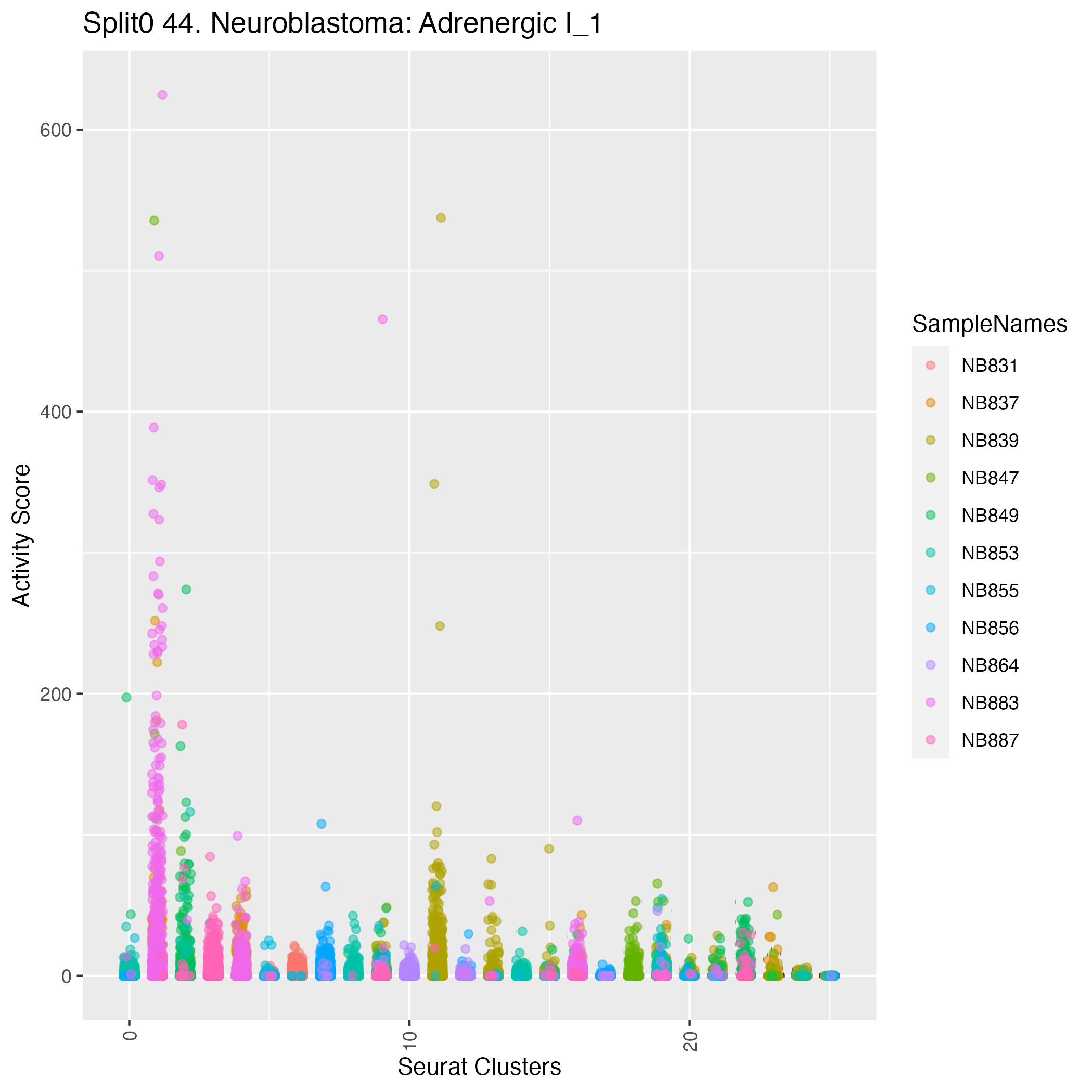 Neuroblastoma (Kildisiute) Neuroblastoma markers obtained from Kildisiute et al, Supplmenentary Table 2, references supporting these genes are provided in Supp Table S2 of Kildisiute et al (PMID 33547074) https://www.science.org/doi/suppl/10.1126/sciadv.abd3311/suppl_file/abd3311_tables_s1_to_s12.xlsx: Wilcoxon ranksum test P-value for gene set overrepresentation: 7.65e-01 Mean rank of genes in gene set: 13003.33 Rank on gene expression program of genes in gene set: