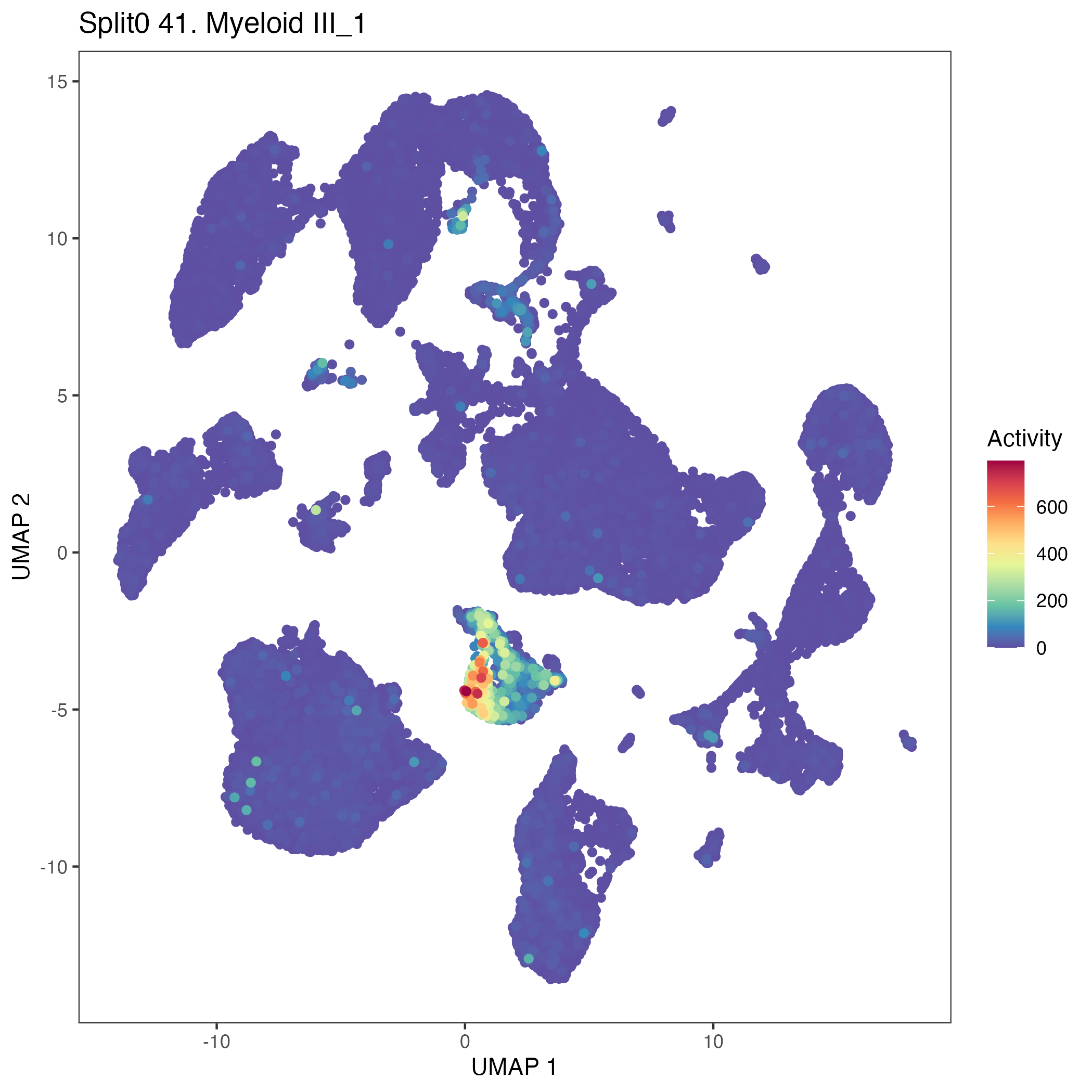 MNP: MNP (model markers) mononuclear phagocytes including dendritic cells: Wilcoxon ranksum test P-value for gene set overrepresentation: 8.61e-01 Mean rank of genes in gene set: 16520.4 Rank on gene expression program of genes in gene set: