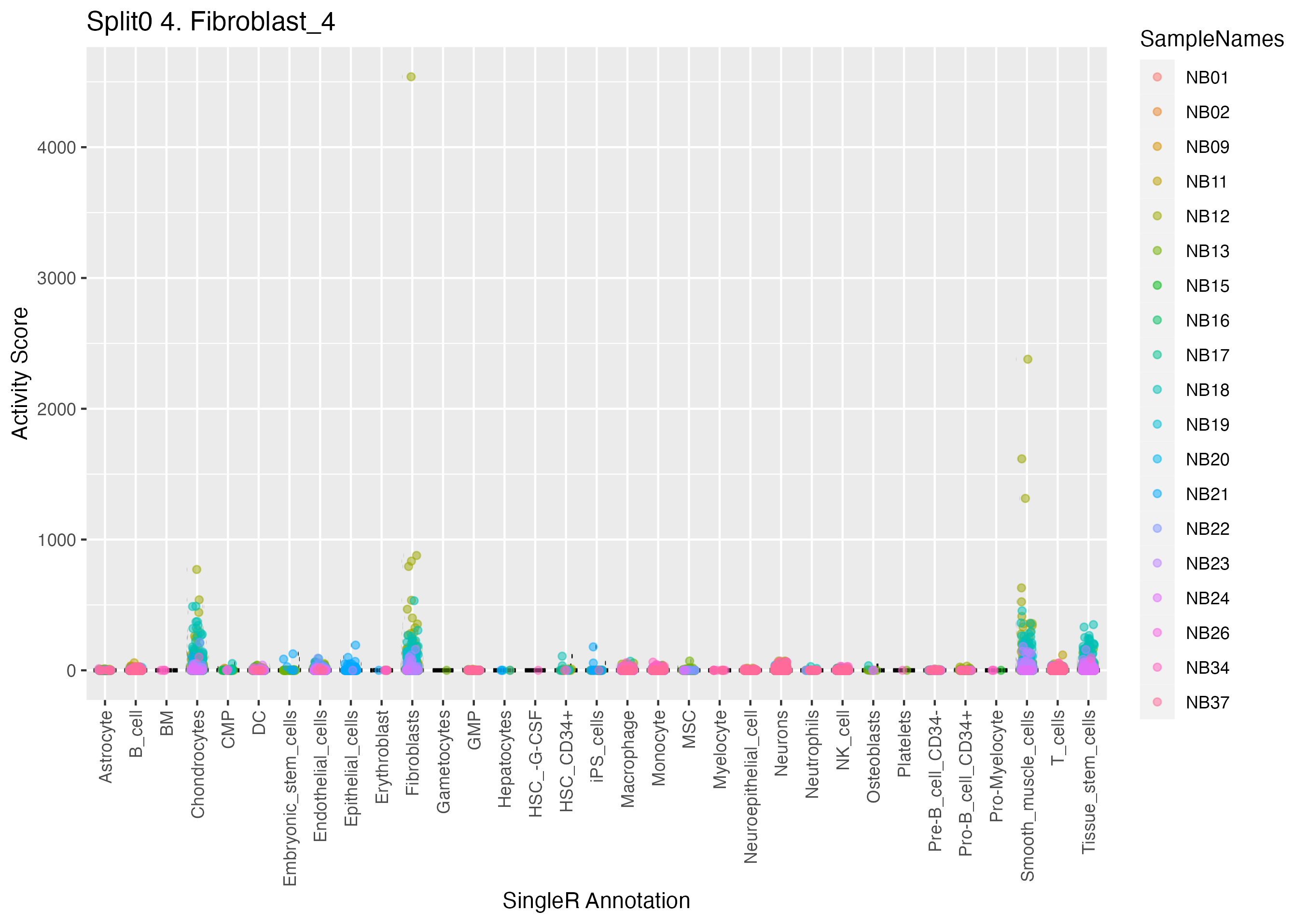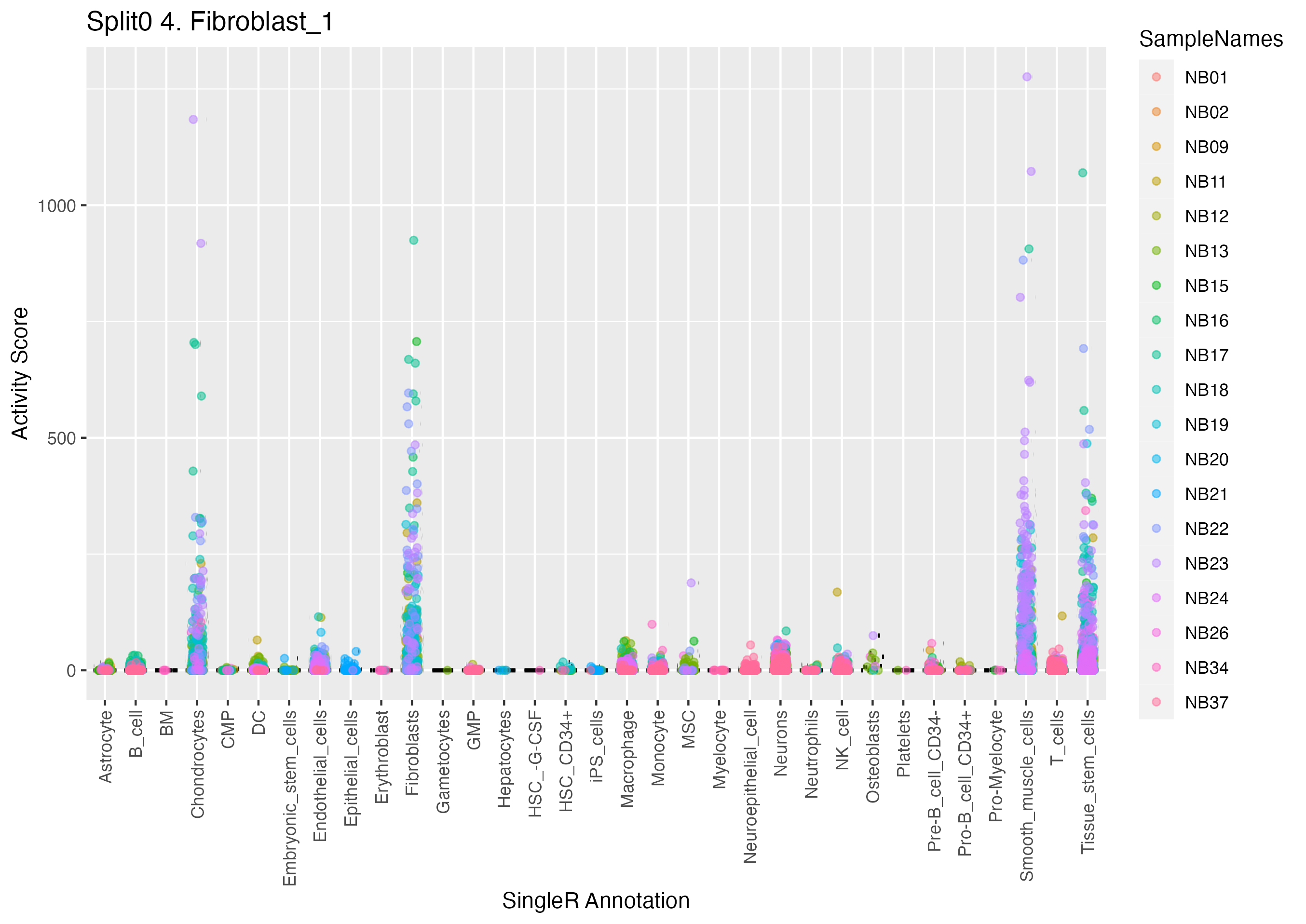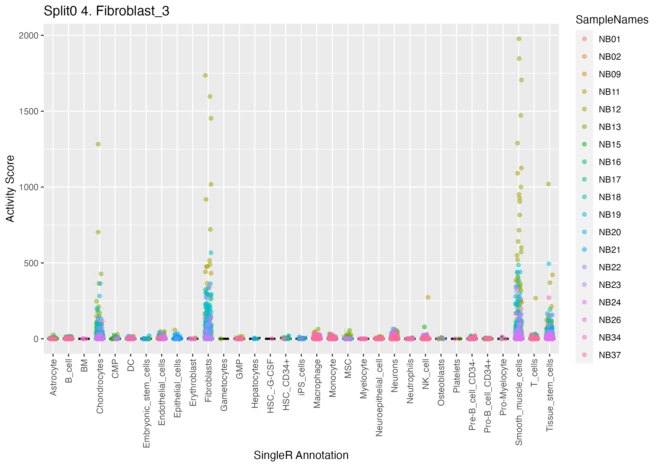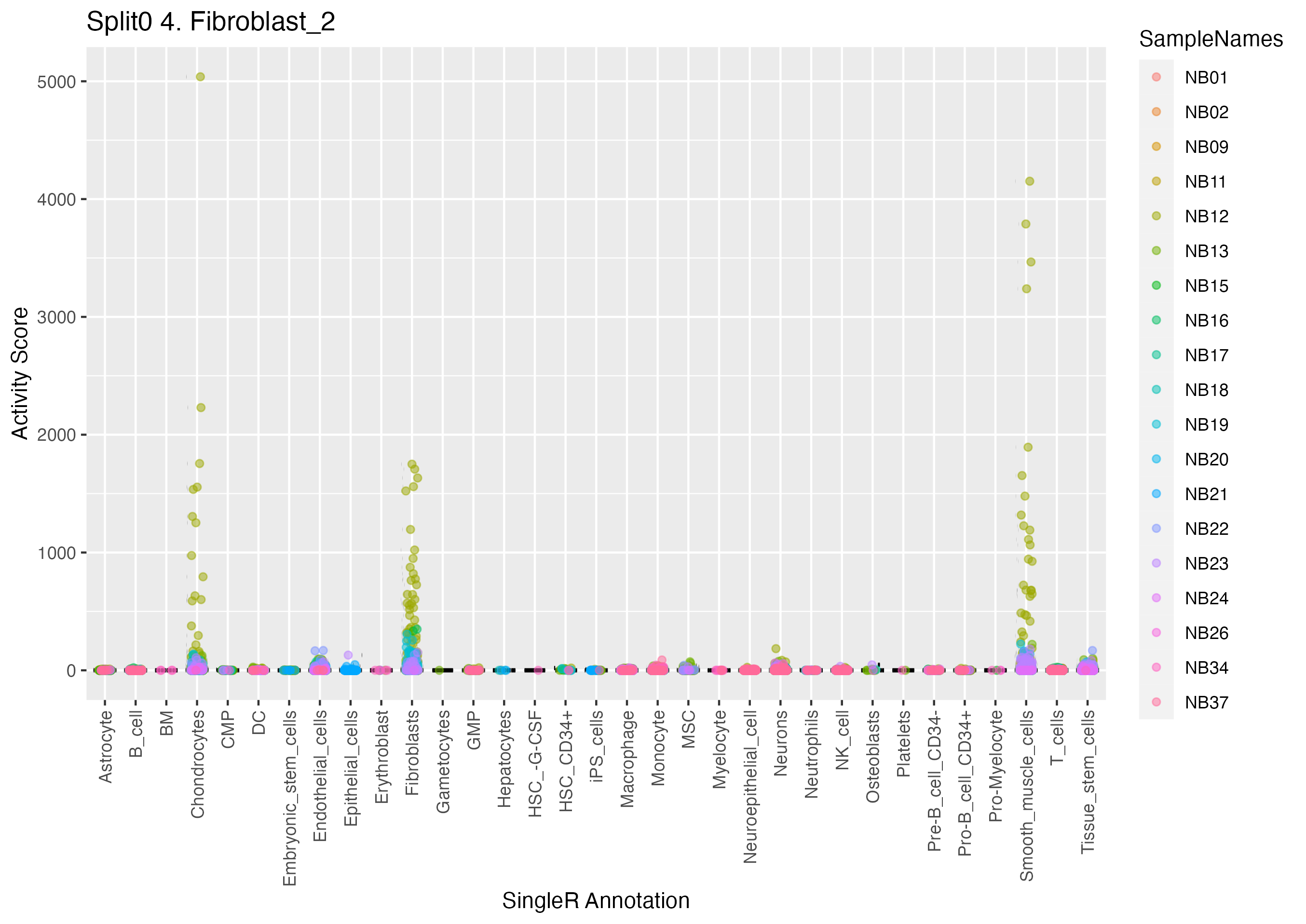 Normal Schwann cell precurors, but not Neuroblastoma Scps (Olsen) Based on their neuroblastoma data and stated on page 6 of the main text of Olsen et al. https://www.biorxiv.org/content/10.1101/2020.05.04.077057v1: Wilcoxon ranksum test P-value for gene set overrepresentation: 9.87e-01 Mean rank of genes in gene set: 27082.5 Rank on gene expression program of genes in gene set: