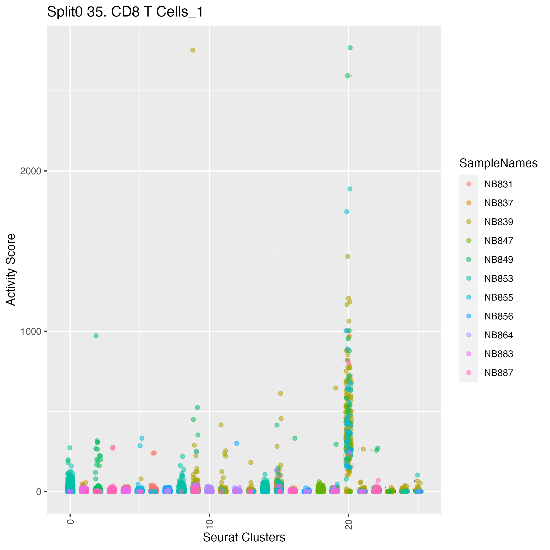 Cycling cells: Cycling T cells (curated markers) proliferating T lymphocytes: Wilcoxon ranksum test P-value for gene set overrepresentation: 7.90e-01 Mean rank of genes in gene set: 13288.67 Rank on gene expression program of genes in gene set: