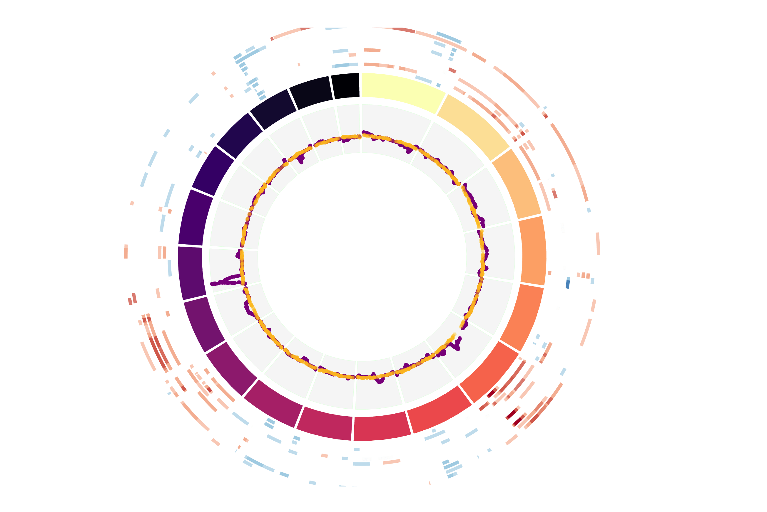 Outer tracks are putative CNV regions (gains = red, losses = blue) for each patient