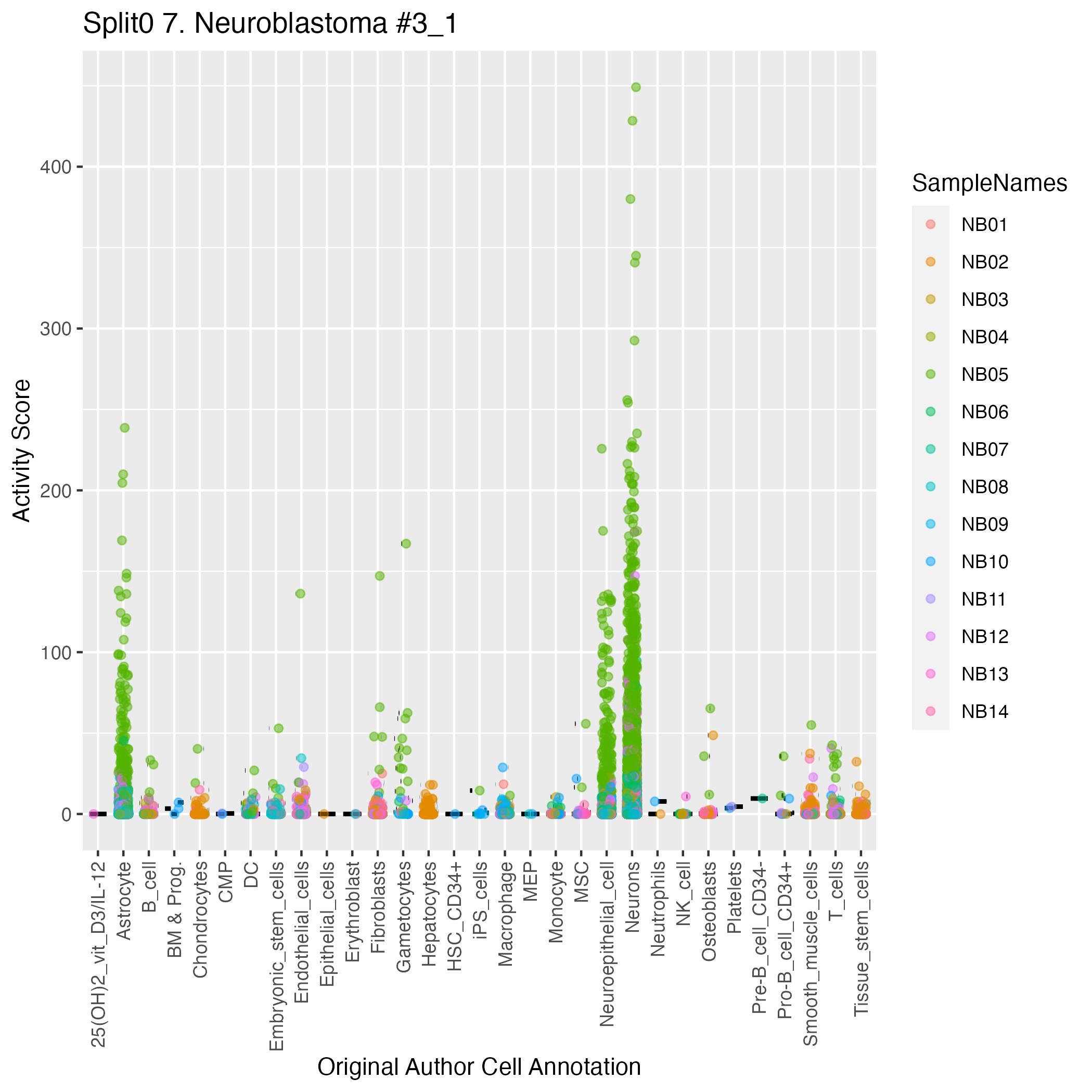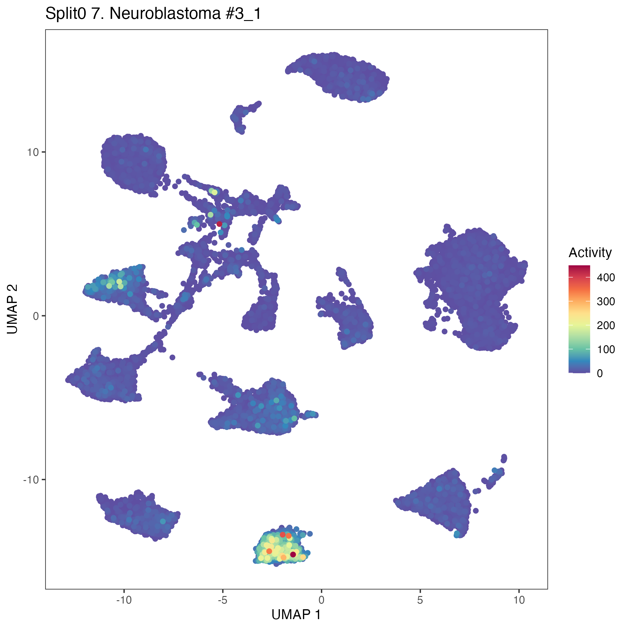 UMAP plots showing activity of gene expression program identified in community:7. Neuroblastoma #3