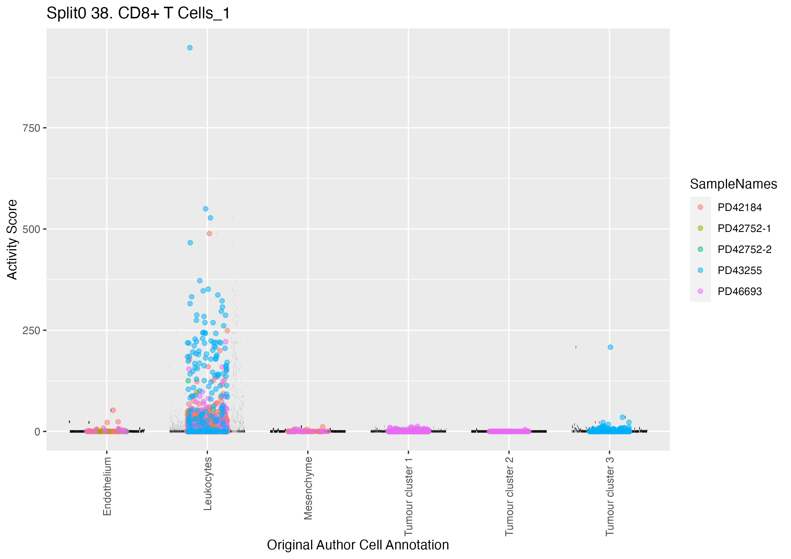 Leukocyte (Kildisiute) Leukocyes markers obtained from Kildisiute et al, Supplmenentary Table 2, references supporting these genes are provided in Supp Table S2 of Kildisiute et al (PMID 33547074) https://www.science.org/doi/suppl/10.1126/sciadv.abd3311/suppl_file/abd3311_tables_s1_to_s12.xlsx: Wilcoxon ranksum test P-value for gene set overrepresentation: 4.33e-02 Mean rank of genes in gene set: 66 Rank on gene expression program of genes in gene set: