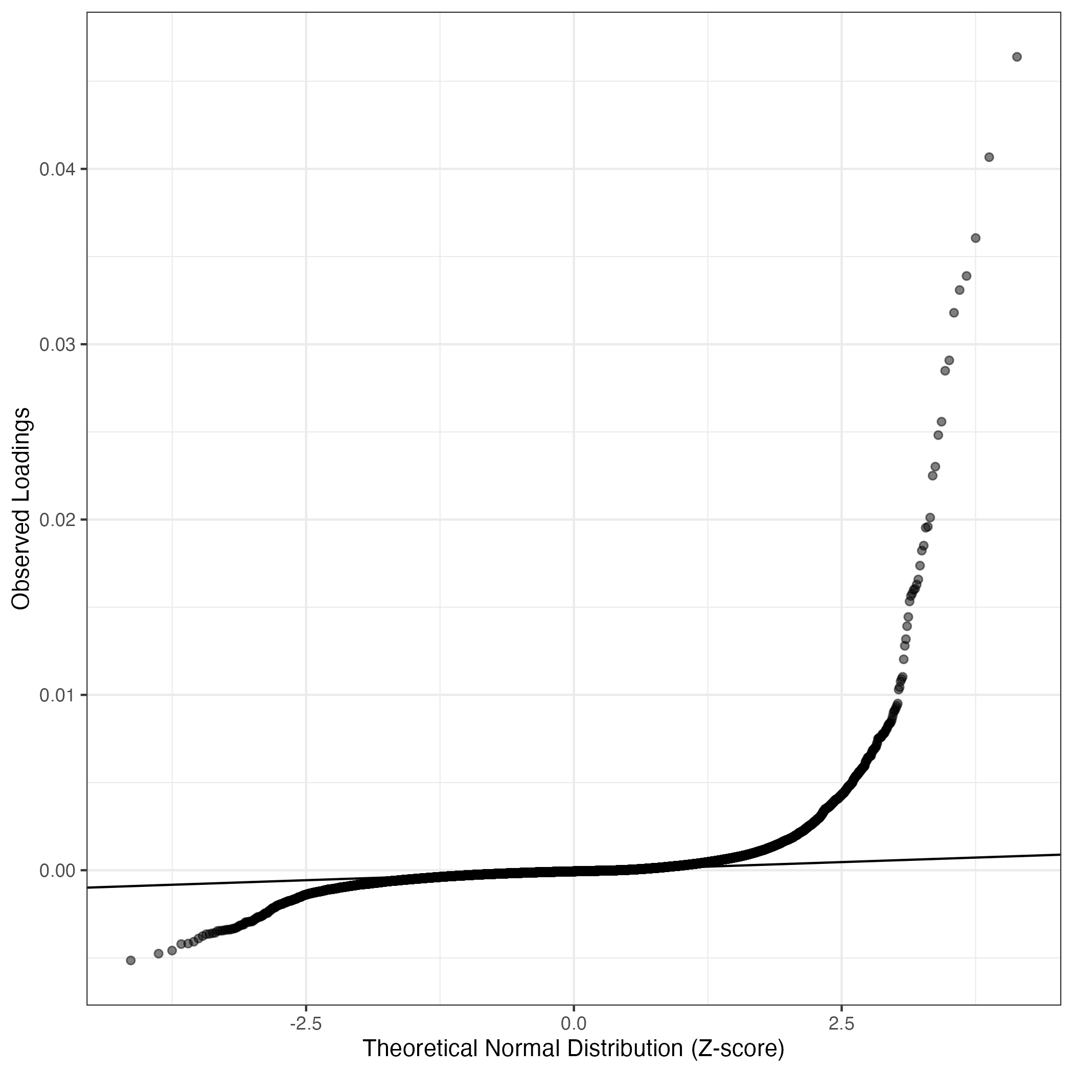 A similar QQ-plot as above, but only for instances where the H value is e.g. > 25, i.e. we are confident that the expression program is active above noise. Agreemenet between these binary vectors is tested using the Jaccard Index, with the P-values calculated by an exact test: