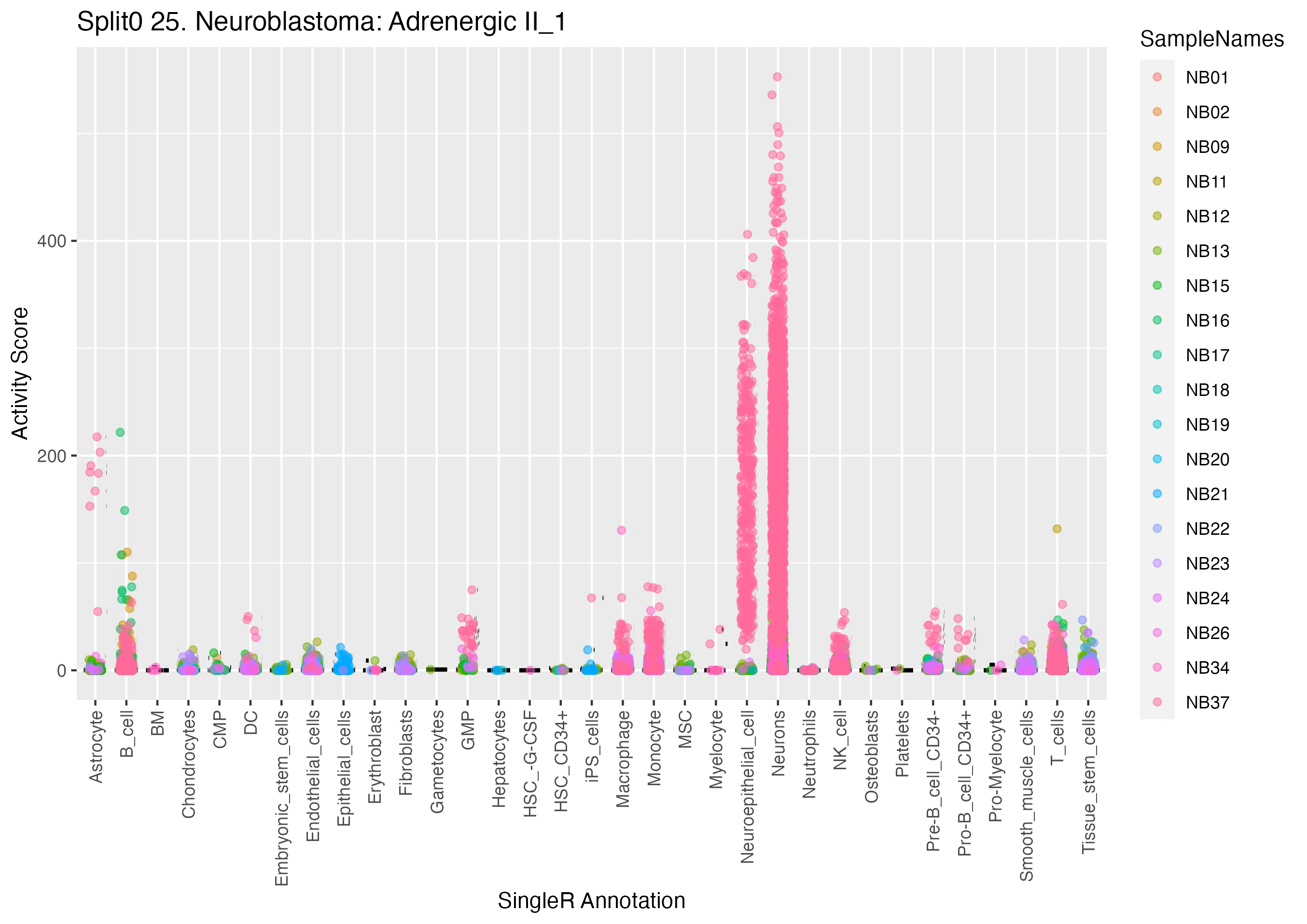 Adrenergic neuroblatoma (Olsen) Stated on page 6 of the main text of Olsen et al. https://www.biorxiv.org/content/10.1101/2020.05.04.077057v1 - neuroblastoma adrenergic markers derived from their data, which are state as resembling sympathoblasts and lacking chromffin markers such as PNMT: Wilcoxon ranksum test P-value for gene set overrepresentation: 1.78e-02 Mean rank of genes in gene set: 2019.5 Rank on gene expression program of genes in gene set: