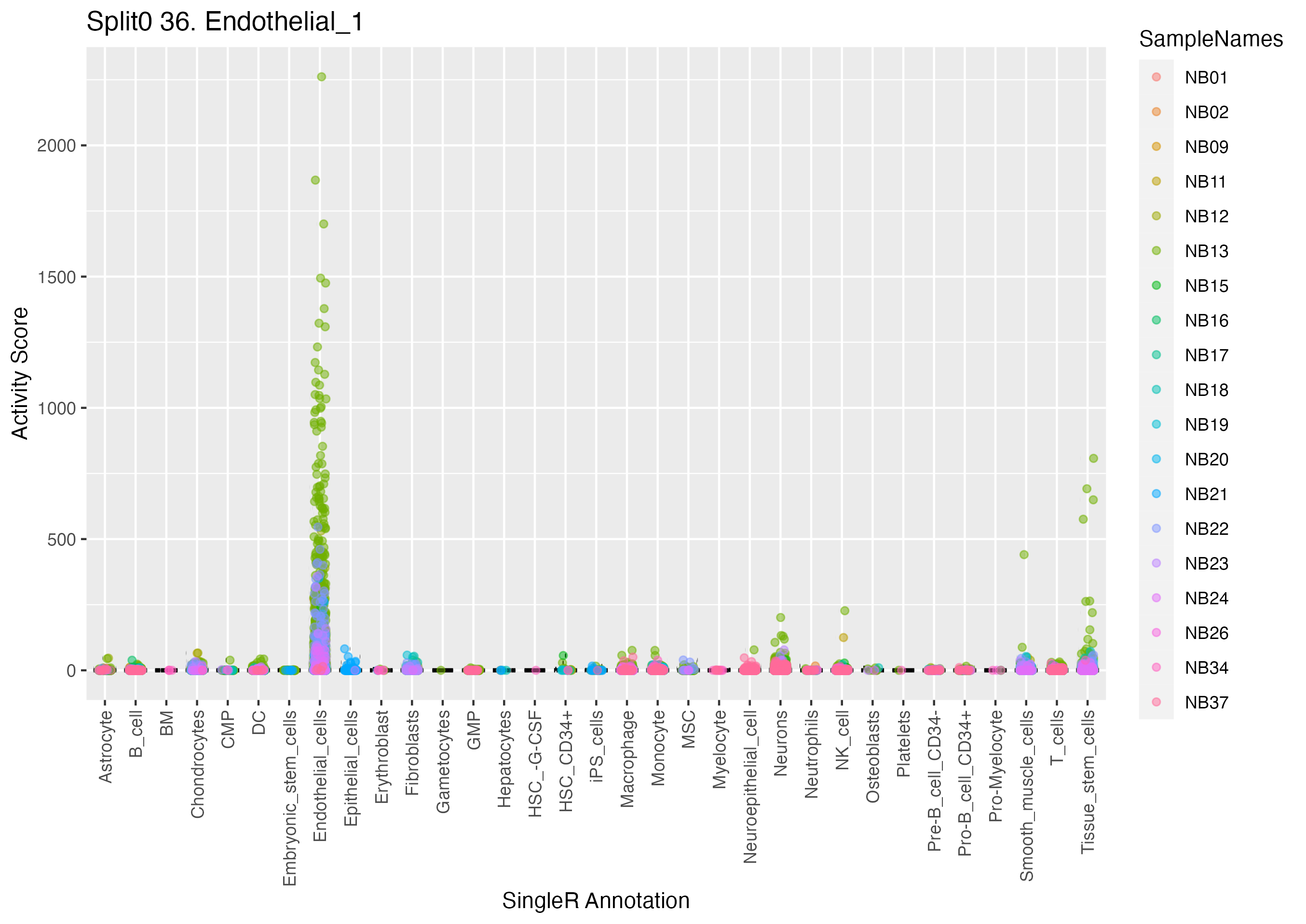 Normal Schwann cell precurors, but not Neuroblastoma Scps (Olsen) Based on their neuroblastoma data and stated on page 6 of the main text of Olsen et al. https://www.biorxiv.org/content/10.1101/2020.05.04.077057v1: Wilcoxon ranksum test P-value for gene set overrepresentation: 9.56e-01 Mean rank of genes in gene set: 24090 Rank on gene expression program of genes in gene set: