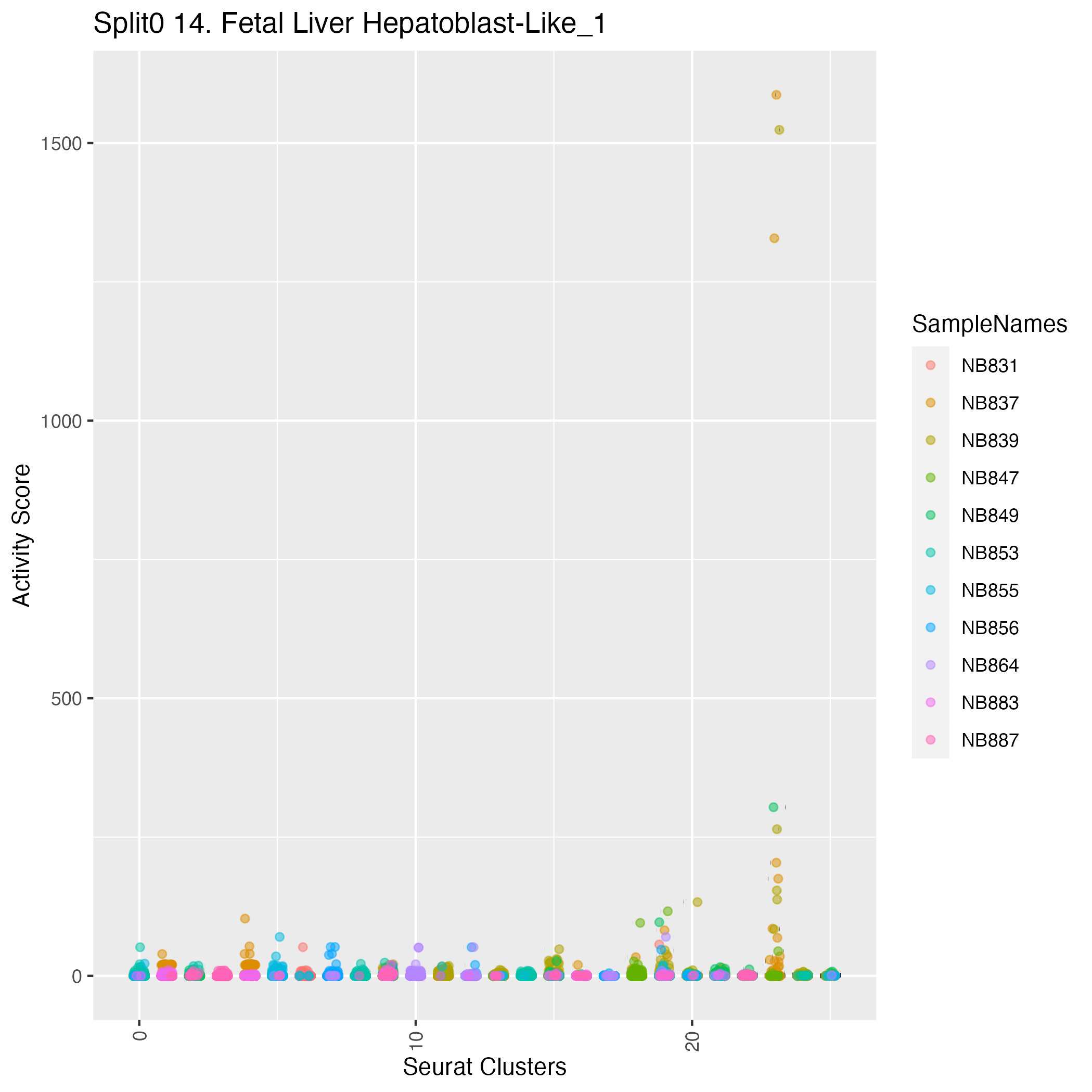 Late Neuroblasts (Jansky Fig1E) Heatmap in Fig. 1E, marker genes derived from Jansks scRNA-seq data for adrenal medulla cell types. Note: the Jansky Late Neuroblast signature is the same as the earlier Neuroblast signature, but NEFM and ALK are now absent (meaning lower expressed at later stages of differentiation): Wilcoxon ranksum test P-value for gene set overrepresentation: 5.90e-01 Mean rank of genes in gene set: 11094 Rank on gene expression program of genes in gene set: