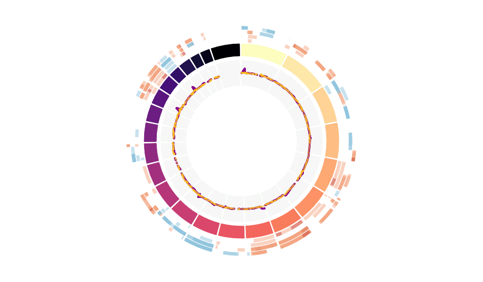 Outer tracks are putative CNV regions (gains = red, losses = blue) for each patient