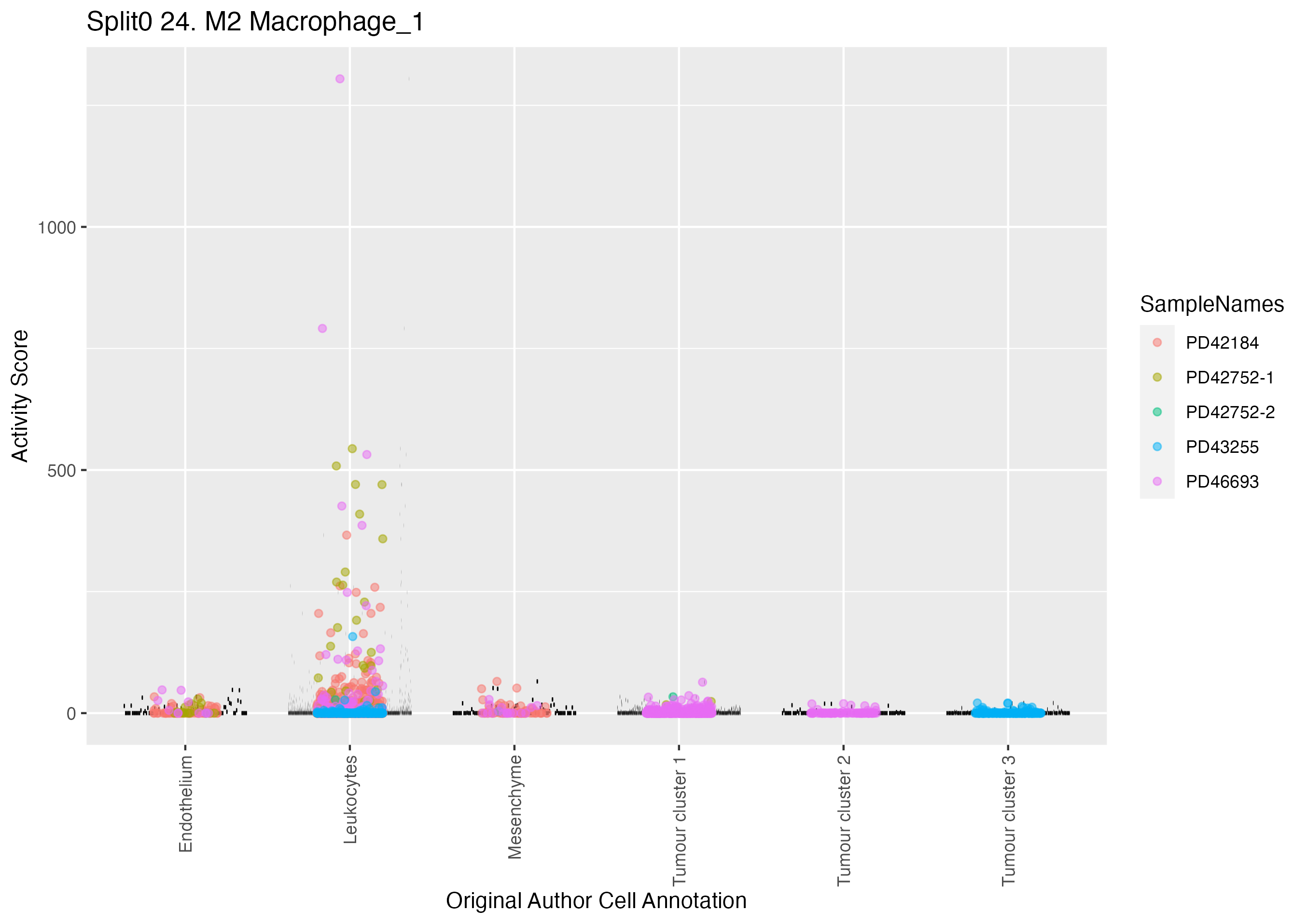 Leukocyte (Kildisiute) Leukocyes markers obtained from Kildisiute et al, Supplmenentary Table 2, references supporting these genes are provided in Supp Table S2 of Kildisiute et al (PMID 33547074) https://www.science.org/doi/suppl/10.1126/sciadv.abd3311/suppl_file/abd3311_tables_s1_to_s12.xlsx: Wilcoxon ranksum test P-value for gene set overrepresentation: 8.59e-01 Mean rank of genes in gene set: 10166 Rank on gene expression program of genes in gene set: