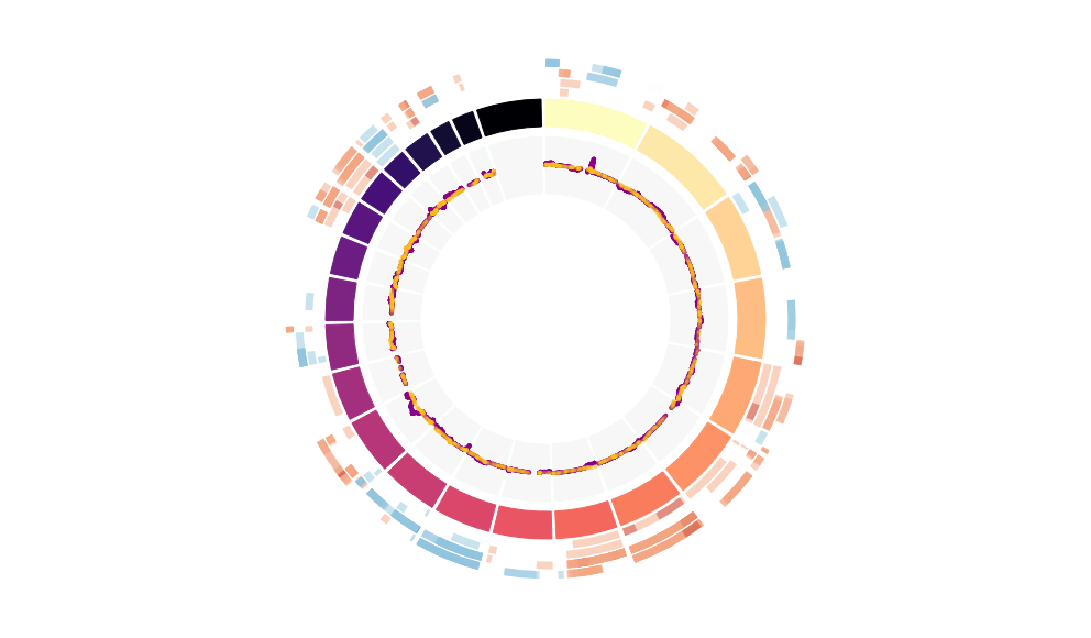 Outer tracks are putative CNV regions (gains = red, losses = blue) for each patient
