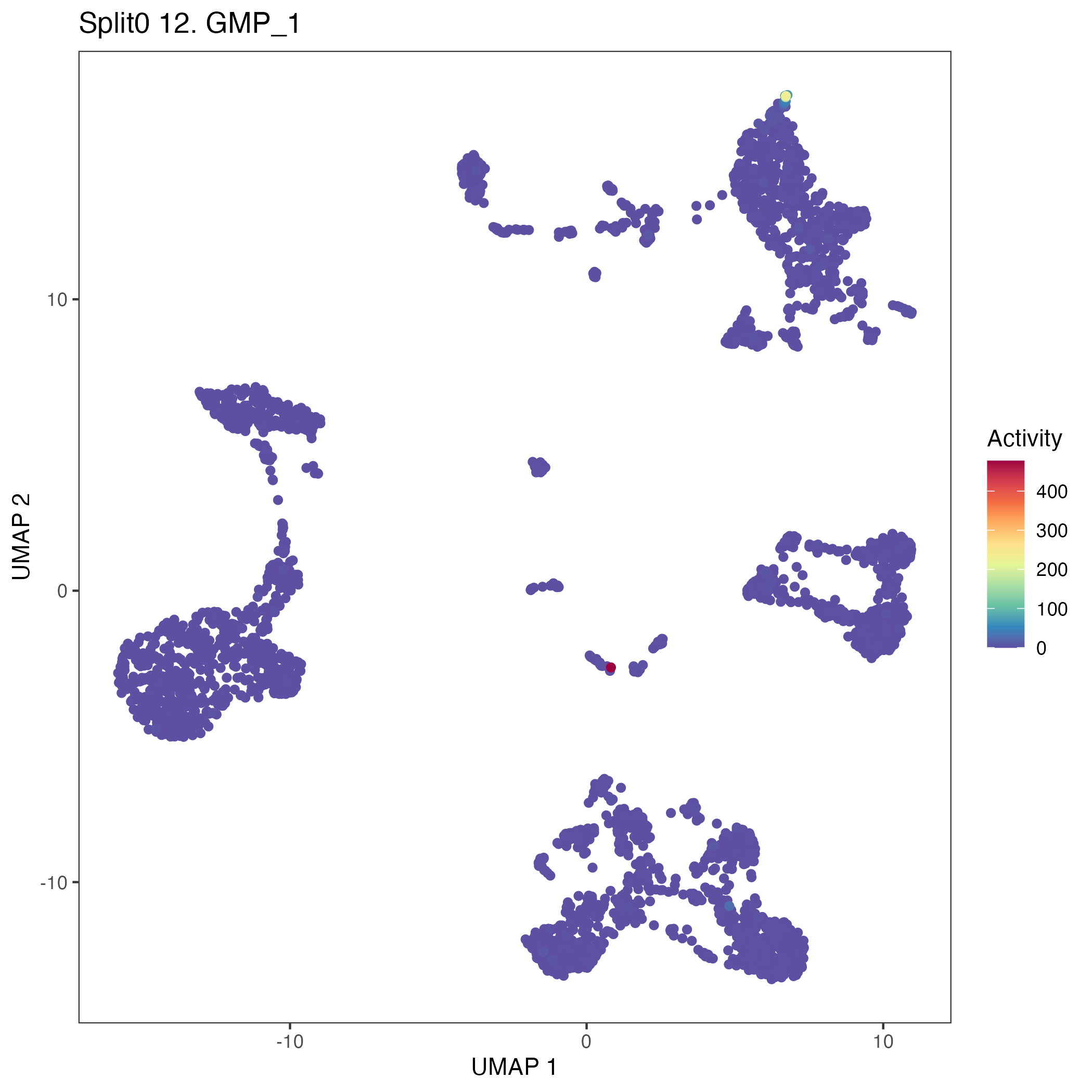 Monocyte precursor: Monocyte precursor (curated markers) monocyte precursors that are committed to the monocytes: Wilcoxon ranksum test P-value for gene set overrepresentation: 9.58e-01 Mean rank of genes in gene set: 12548 Rank on gene expression program of genes in gene set: