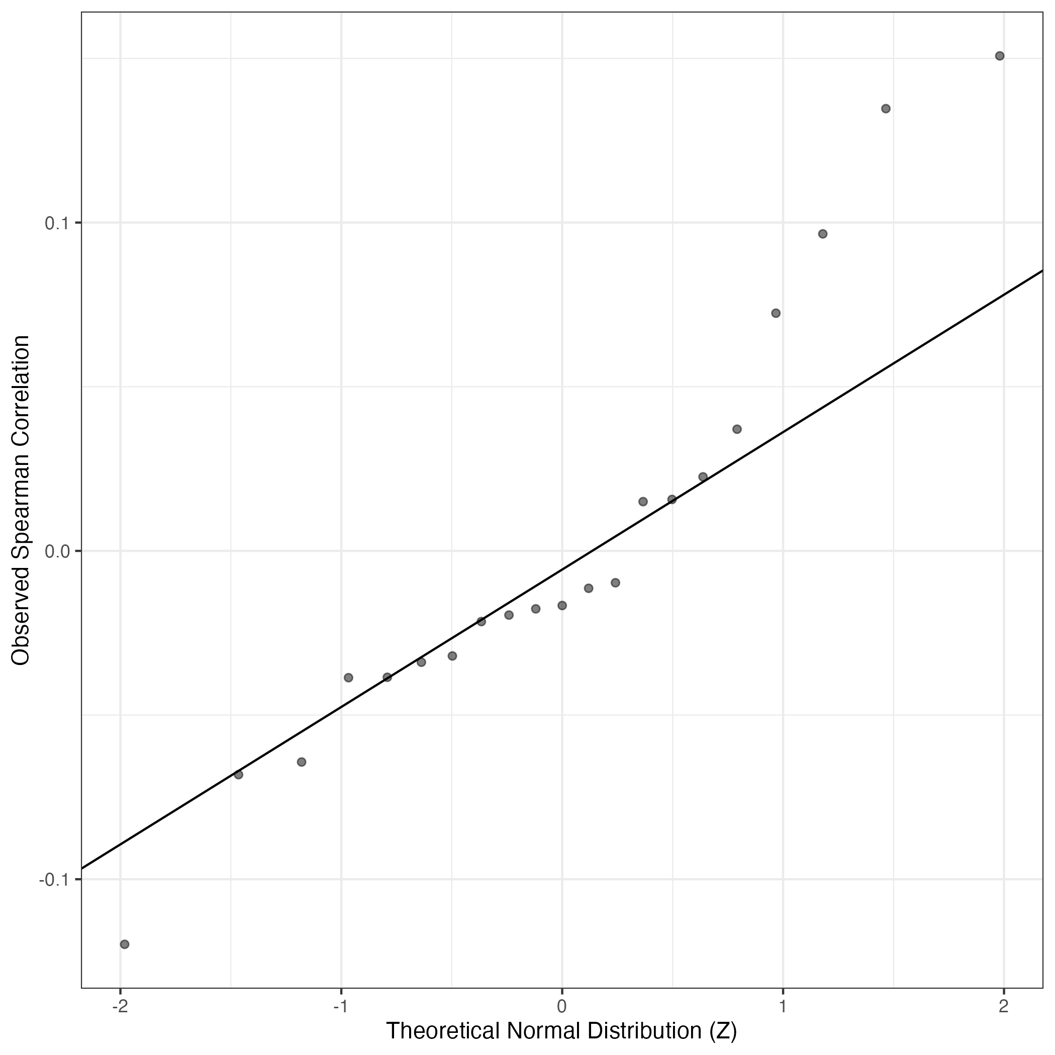 QQ-plot of gene loadings, averaged over both independent splits of the data