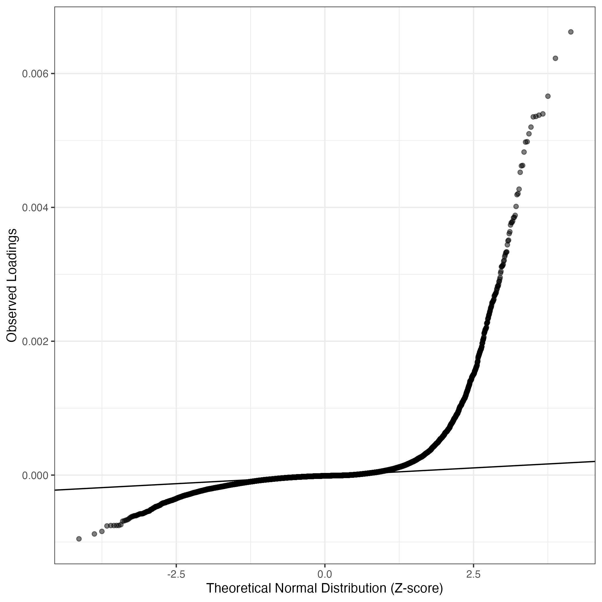 A similar QQ-plot as above, but only for instances where the H value is e.g. > 25, i.e. we are confident that the expression program is active above noise. Agreemenet between these binary vectors is tested using the Jaccard Index, with the P-values calculated by an exact test:
