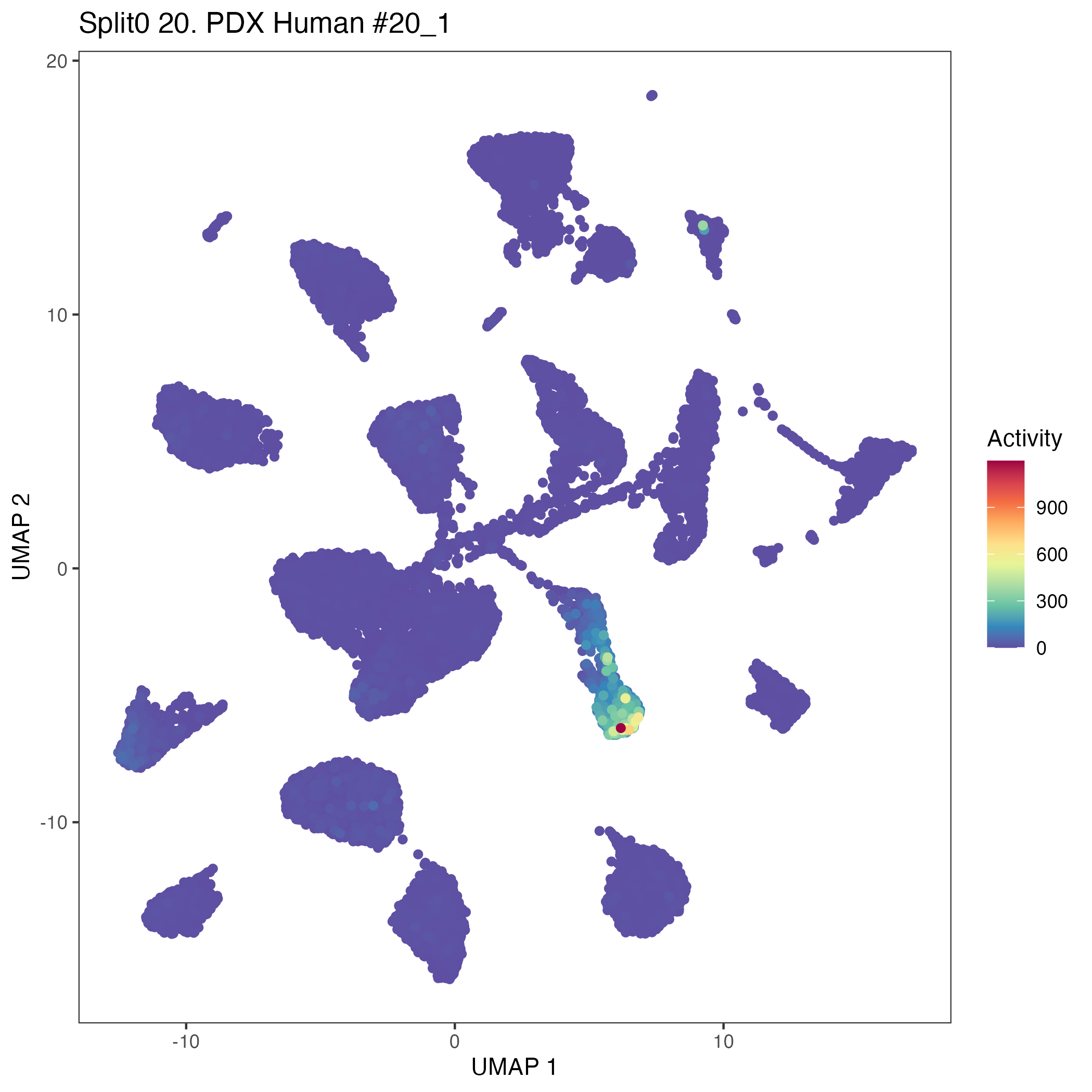 SCPs neuroblastoma unique (Olsen) Similar to above, but for genes unique to neuroblastoma SCP-like cells. Note FN1 is often used as a mesenchymal marker gene.: Wilcoxon ranksum test P-value for gene set overrepresentation: 6.97e-01 Mean rank of genes in gene set: 7038.83 Rank on gene expression program of genes in gene set: