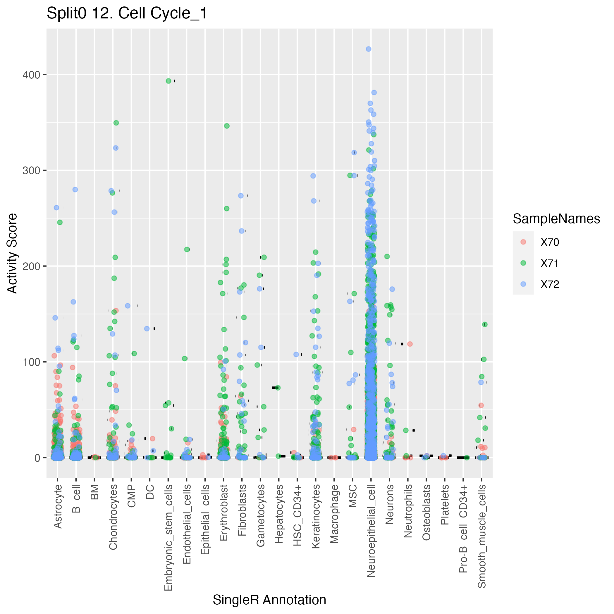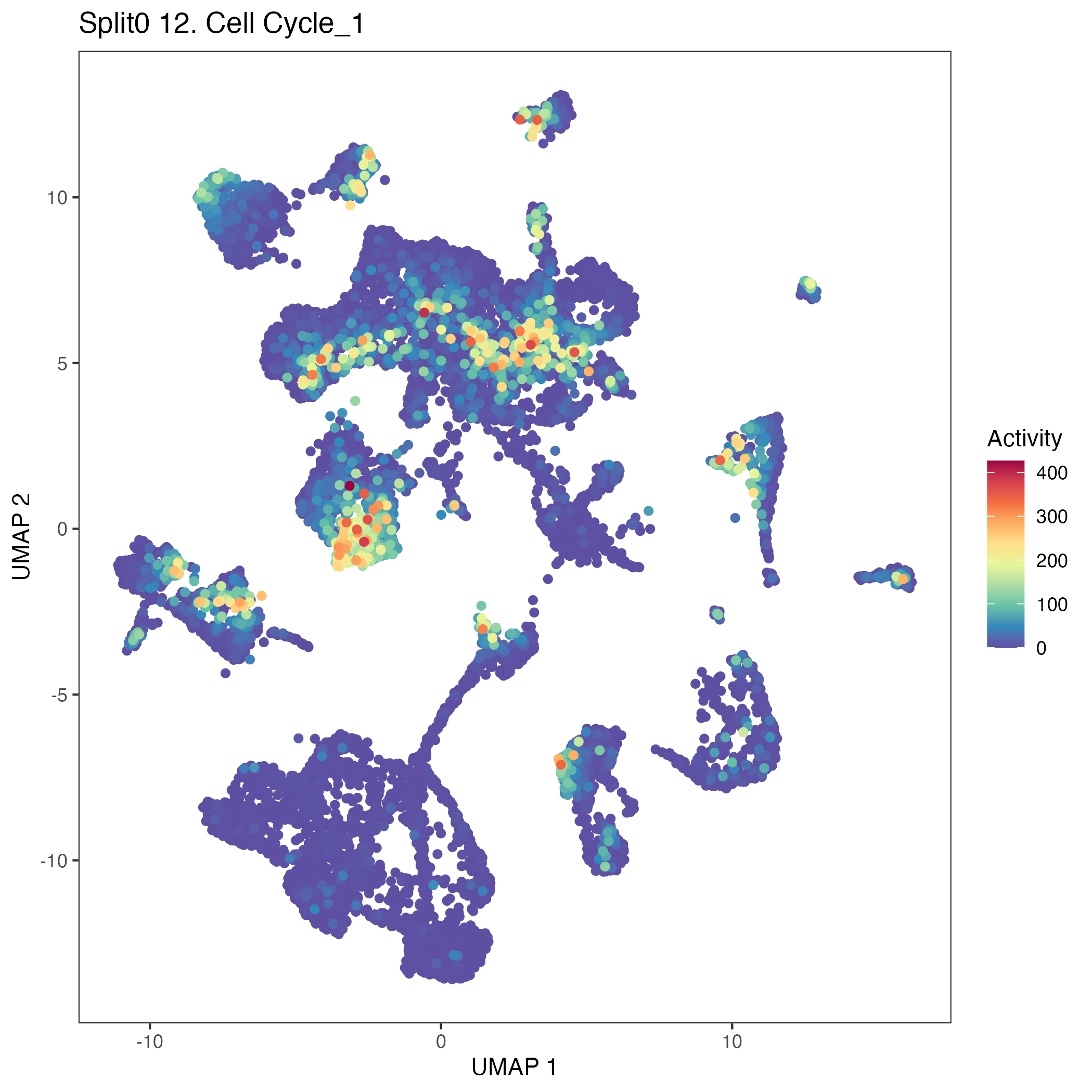UMAP plots showing activity of gene expression program identified in GEP 12. Cell Cycle: