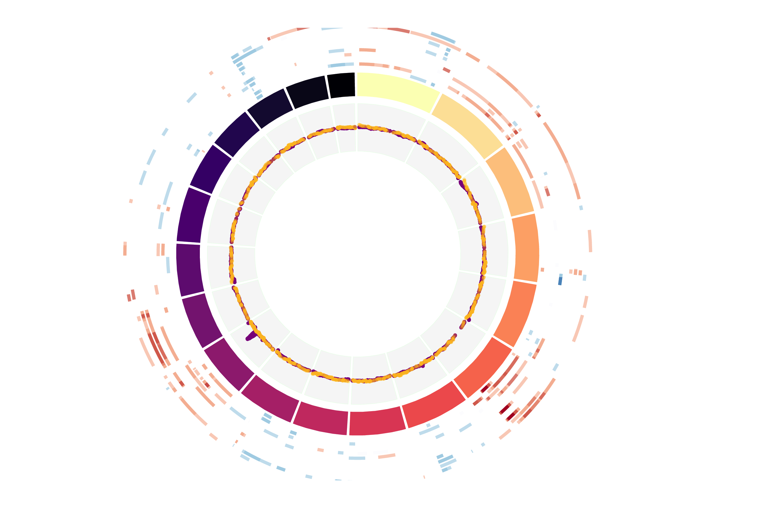 Outer tracks are putative CNV regions (gains = red, losses = blue) for each patient