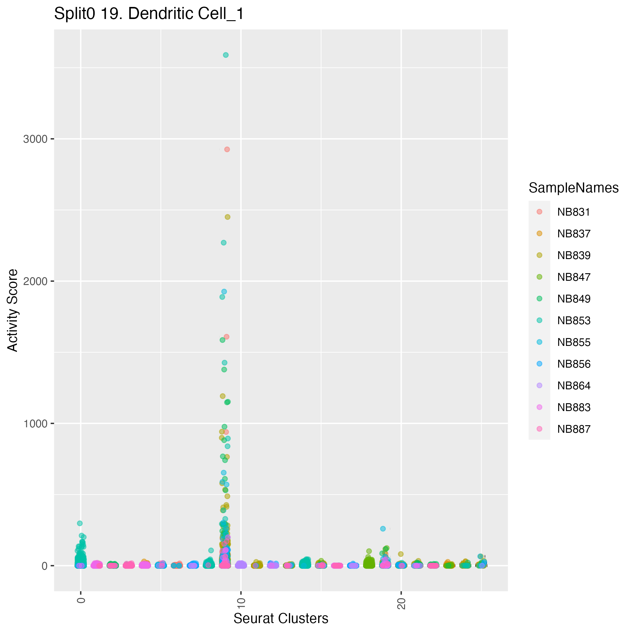 UMAP plots showing activity of gene expression program identified in community:19. Dendritic Cell