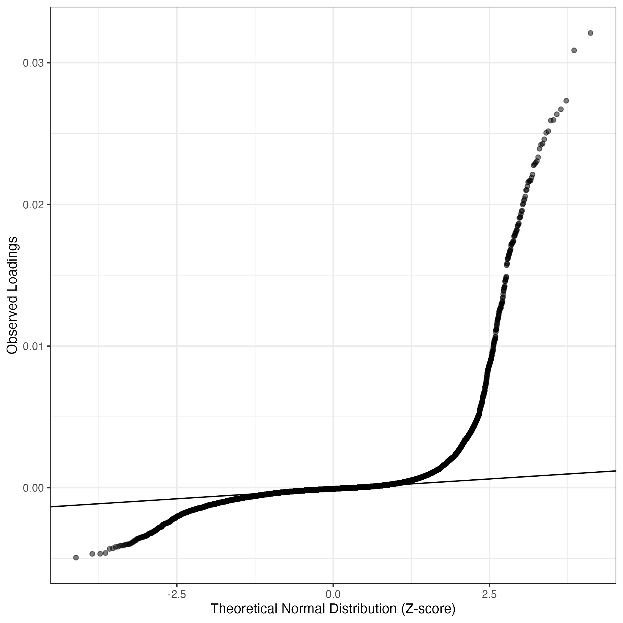 A similar QQ-plot as above, but only for instances where the H value is e.g. > 25, i.e. we are confident that the expression program is active above noise. Agreemenet between these binary vectors is tested using the Jaccard Index, with the P-values calculated by an exact test: