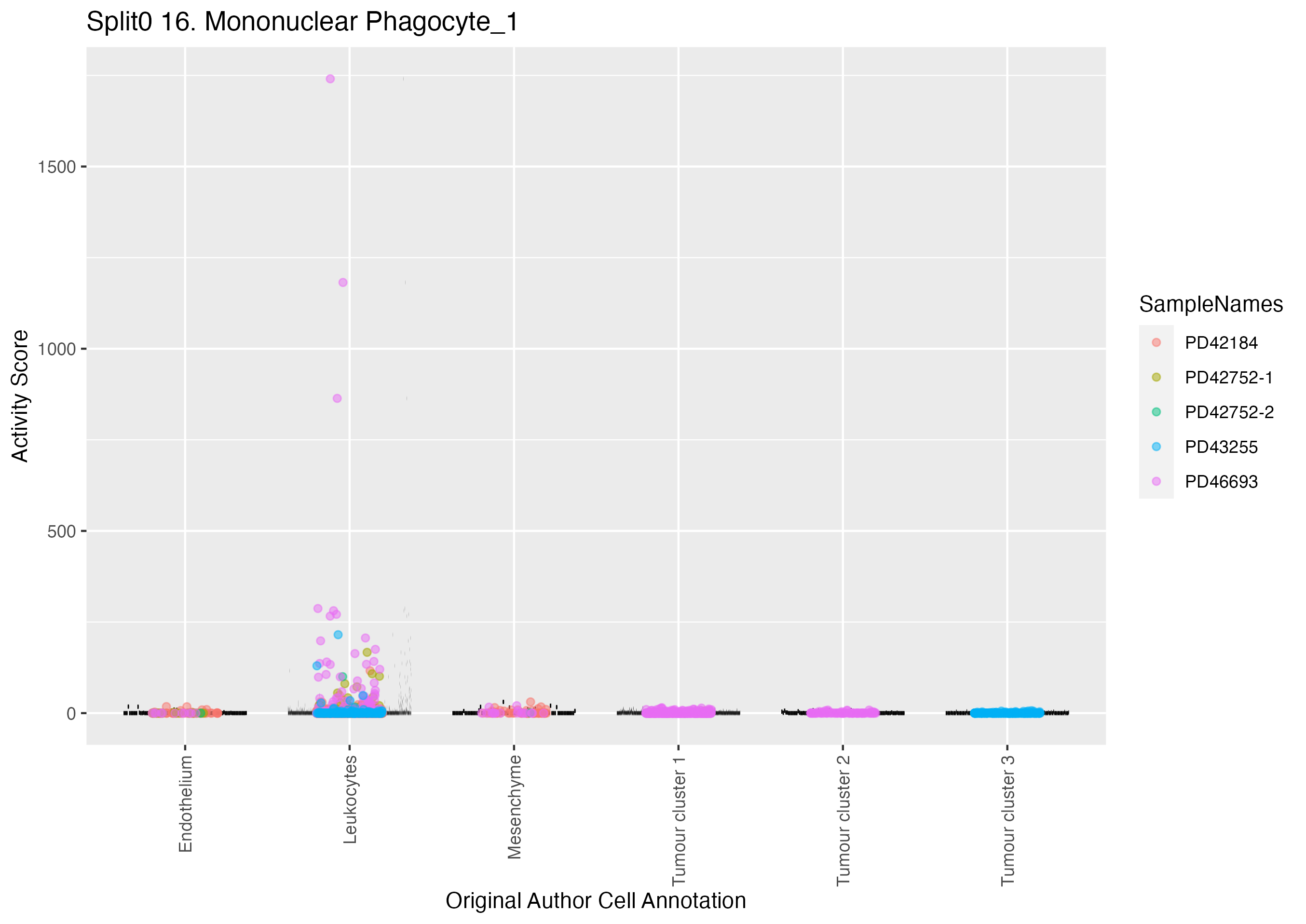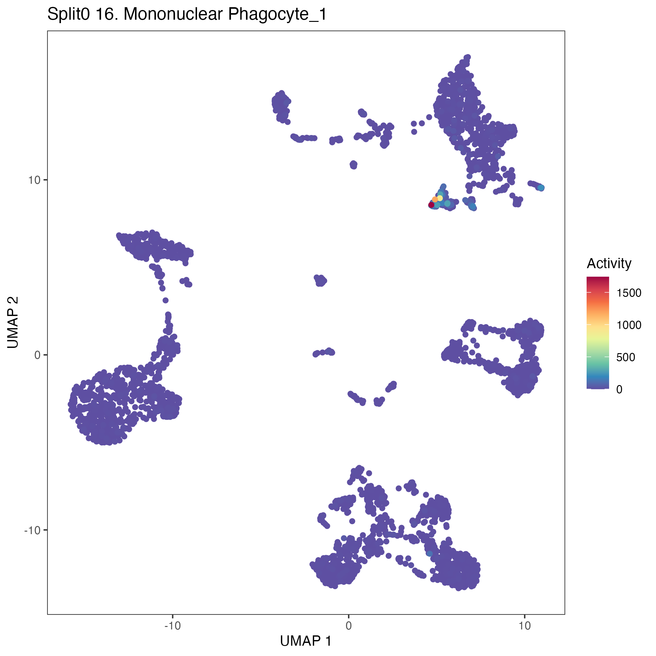 MNP: MNP (curated markers) mononuclear phagocytes including dendritic cells: Wilcoxon ranksum test P-value for gene set overrepresentation: 9.58e-01 Mean rank of genes in gene set: 12515 Rank on gene expression program of genes in gene set: