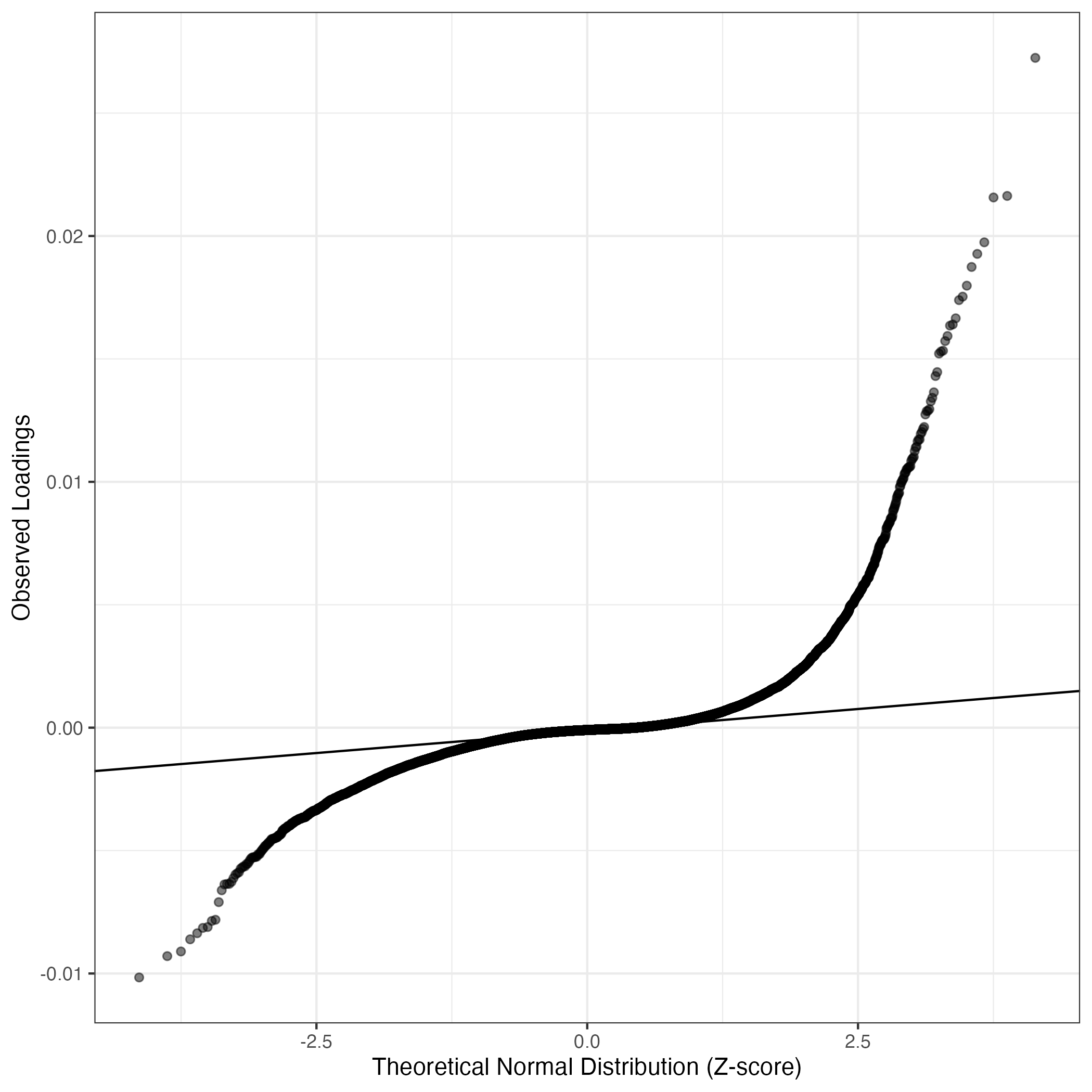 A similar QQ-plot as above, but only for instances where the H value is e.g. > 25, i.e. we are confident that the expression program is active above noise. Agreemenet between these binary vectors is tested using the Jaccard Index, with the P-values calculated by an exact test:
